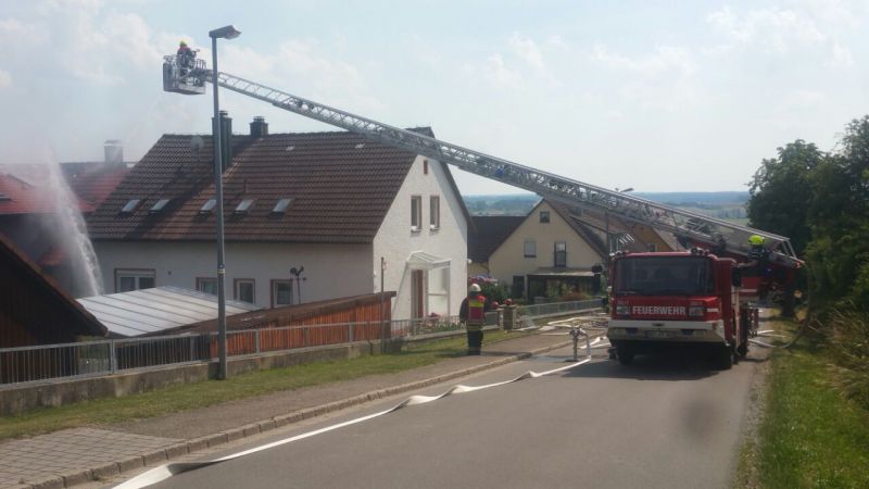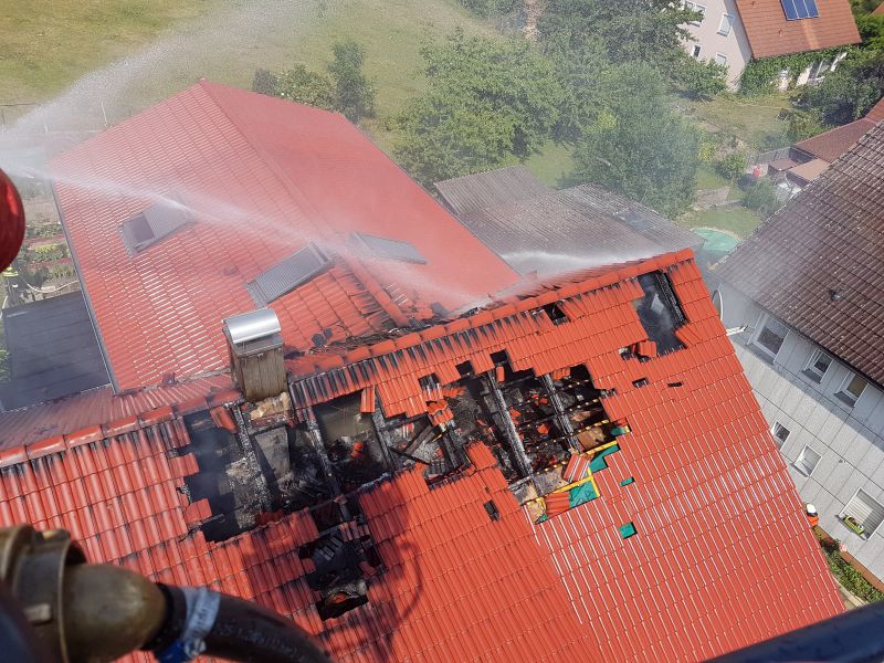 Der Brand im Dachstuhl konnte im ersten Moment nur durch die Kräfte aus Ansbach über die Drehleiter, mit Hilfe des Wenderohrs und durch den Außenangriff der ortsnahen Wehren, welche mehrere C-Rohre einsetzten, eingedämmt werden. Eine Ausbreitung auf das zweite Anwesen konnte durch den massiven Außenangriff, sowie mehrere Trupps unter schwerem Atemschutz im Innenangriff verhindert werden.