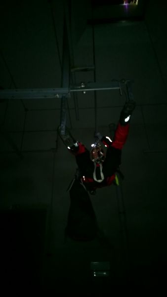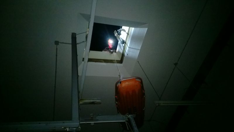 Um eine schnelle Betreuung sicherzustellen, seilten sich daher 2 Feuerwehrleute durch die Dachluke in das Gebäude ab, versorgten eine stark blutende Wunde und schienten eine Fraktur des Armes.