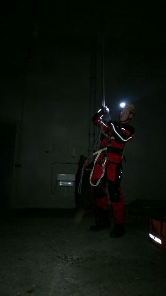 Die Höhenrettung übte in einem alten Industriegebäude die Rettung einer schwerverletzten Person durch eine Dachluke.