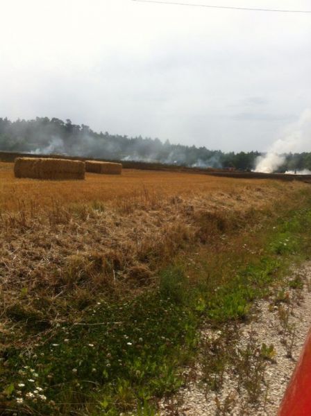 Beim Eintreffen der Feuerwehr stellte sich heraus, dass ein Getreidefeld mit der Größe von ca. 6 ha in Brand stand. Mit insgesamt 12 C-Rohren, mehreren Güllefässern und einem Grubber war das Feuer schnell unter Kontrolle. Einen großen Zeit- und Kräfteaufwand stellte allerdings das Auseinanderziehen der in Brand geratenen Strohballen dar. Aufgrund der Größe der Einatzstelle wurden von der Einsatzleitung mehrere Abschnitte festgelegt.