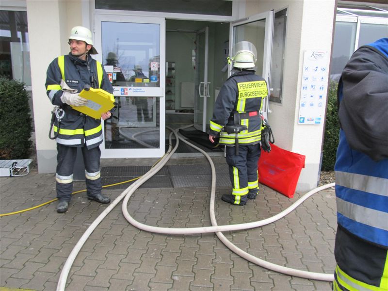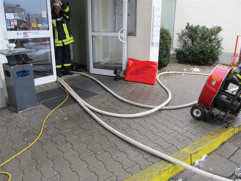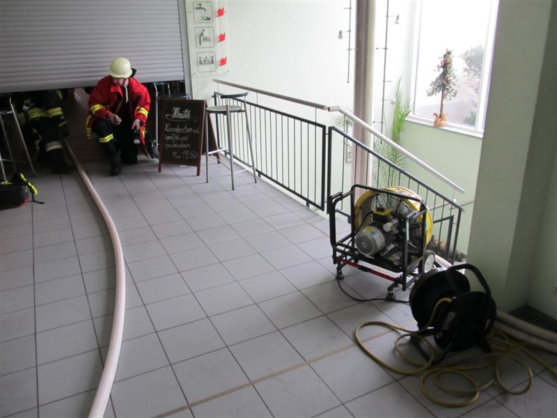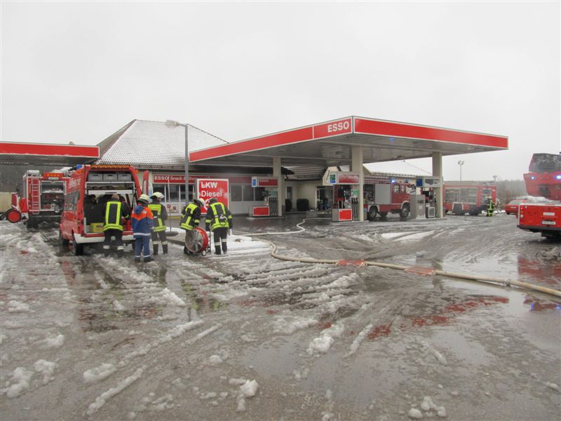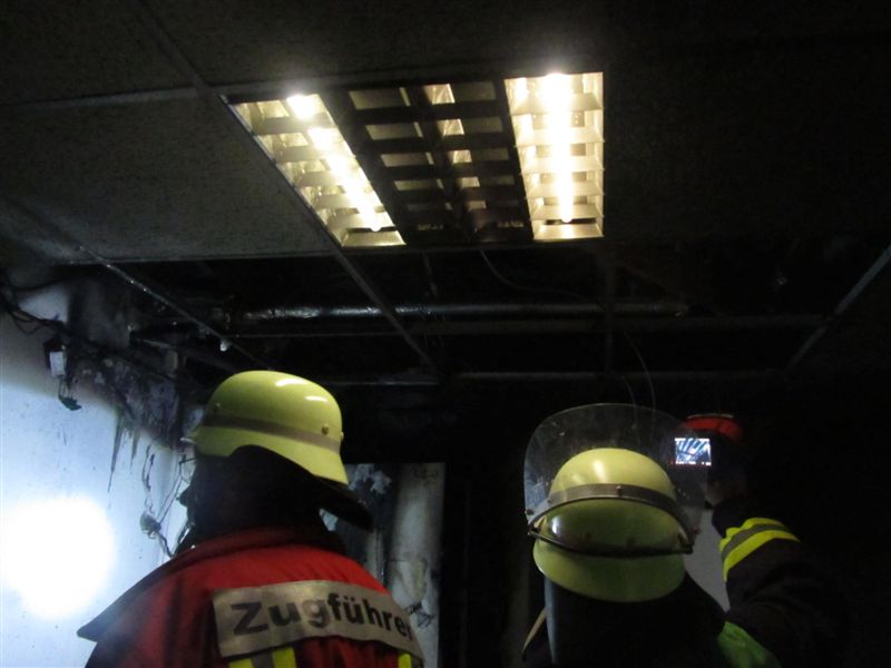 Aus dem Kellerbereich des Autohofes drang dichter Qualm. Mehrere Trupps der Feuerwehren Ansbach, Brodswinden und Burgoberbach drangen unter Atemschutz mit C-Rohren über Treppenhaus und Außentüren in den verqualmten Bereich vor und konnten dort das offene Feuer im Deckenbereich schnell unter Kontrolle bringen und ablöschen. Mit Wärmebildkameras wurde der betroffene Bereich kontrolliert. Zeitgleich brachten weitere Kräfte Überdrucklüfter in Stellung, um die Rauchgase aus dem Restaurant- und Verkaufsbereich abzudrängen. Feuerwehrleute der FF Bernhardswinden unterstützten hierbei und sorgten für die Ordnung der Einsatzstelle.