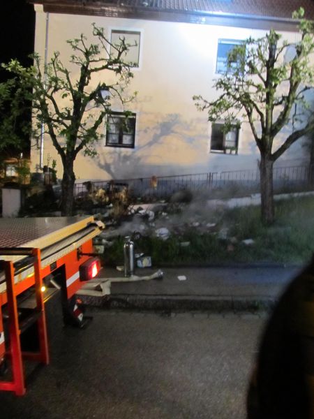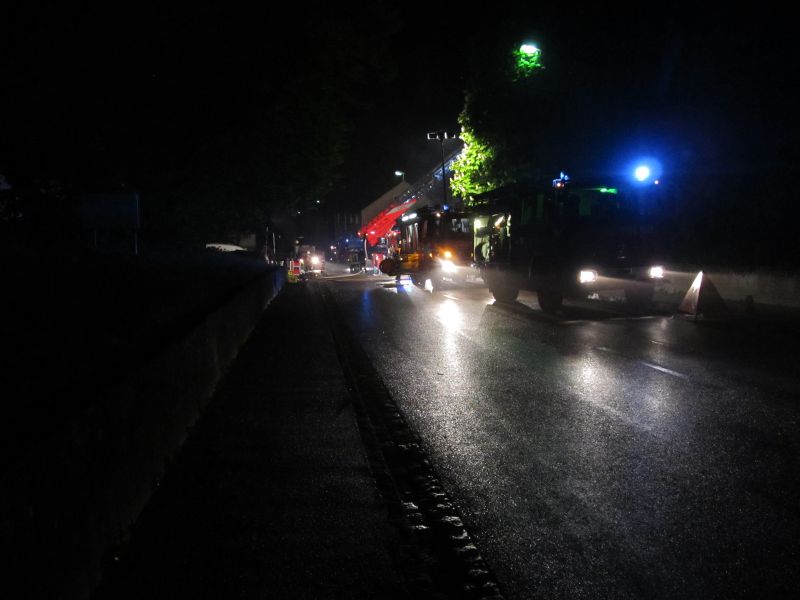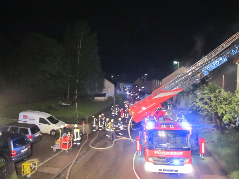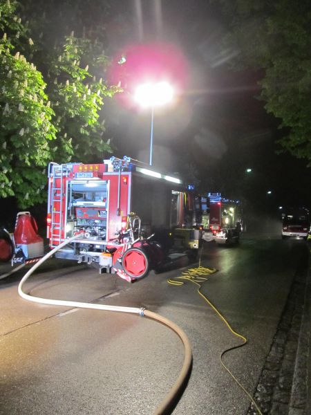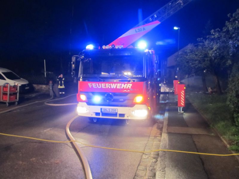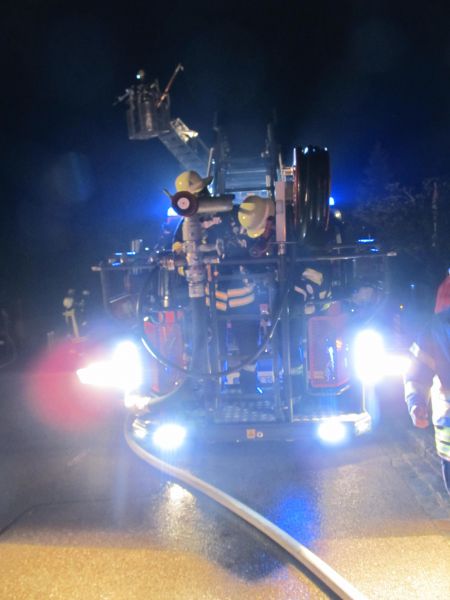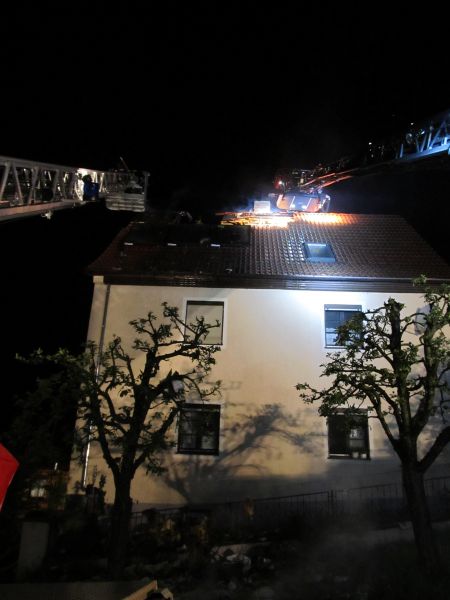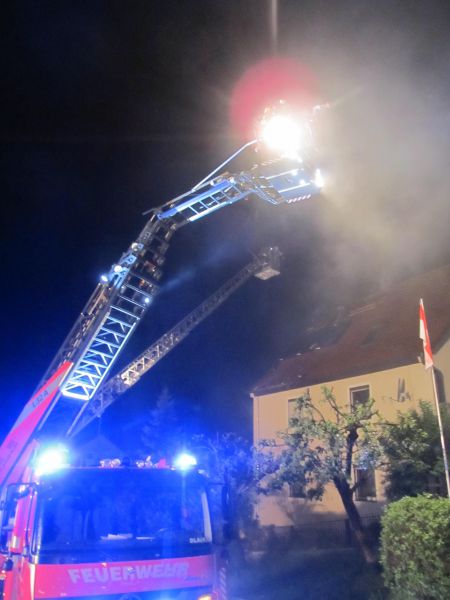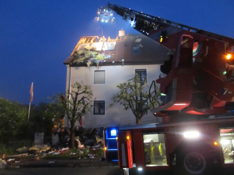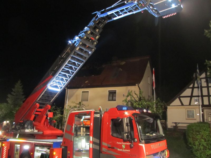Die Feuerwehr Ansbach wurde kurz vor 2 Uhr zur Unterstützung der Nachlöscharbeiten und zum Öffnen der Dachhaut mit Drehleiter und Atemschutzgeräteträgern angefordert.