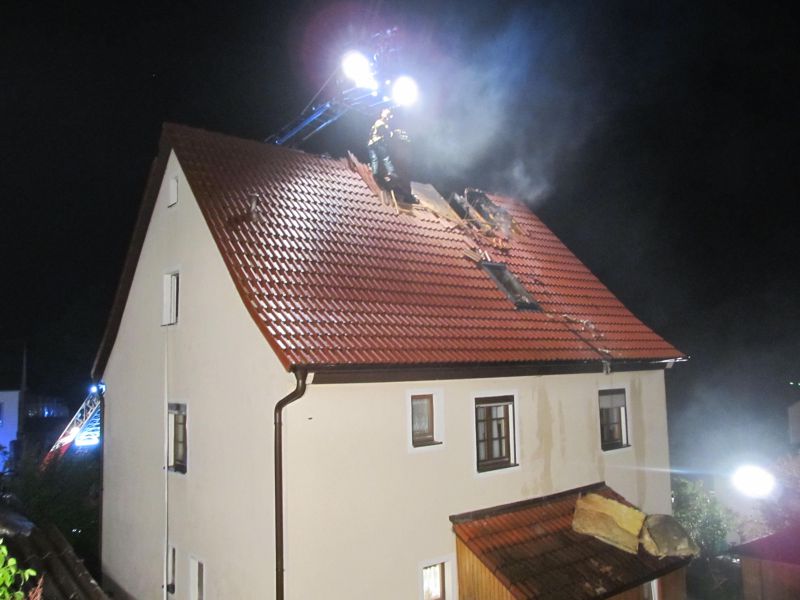 Der Dachstuhl eines Wohnhauses hatte nach einem Blitzschlag Feuer gefangen.