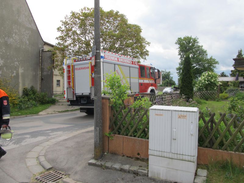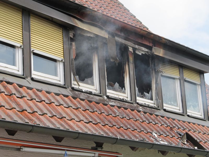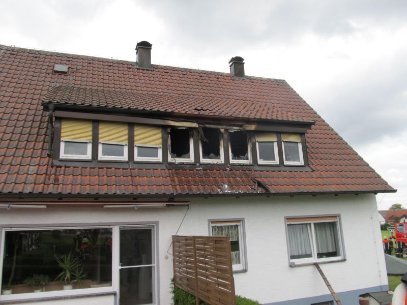 Ein Wohnhaus stand im Bereich des ersten Obergeschosses und des Dachbodens im Vollbrand. Eine Durchzündung des Dachstuhles konnte durch einen schnellen und massiven Löschangriff verhindert werden.