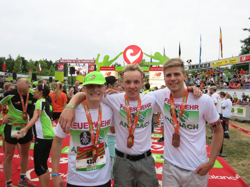 Die Staffel 1 der Feuerwehr Ansbach setzte sich aus Rainer Schwarzbeck (Schwimmer), Tilman Wörrlein (Radfahrer) und Dominik Luksch (Läufer) zusammen. Sie erreichten eine Zeit von 11:27:08 (01:09:09, 05:40:24, 04:32:56).