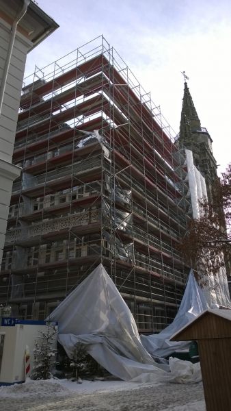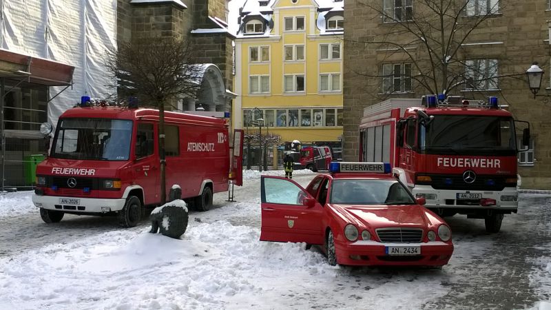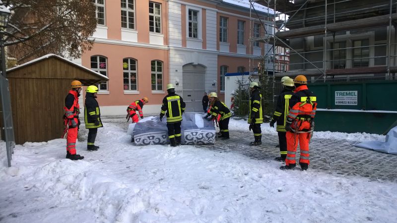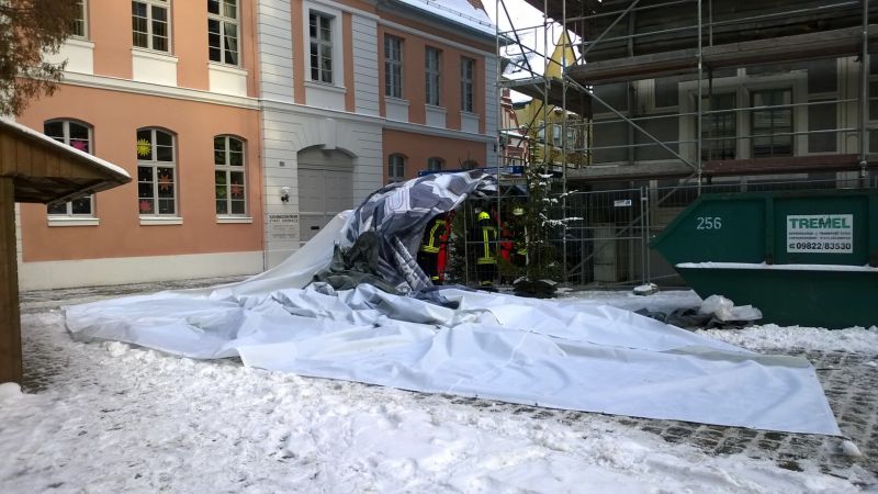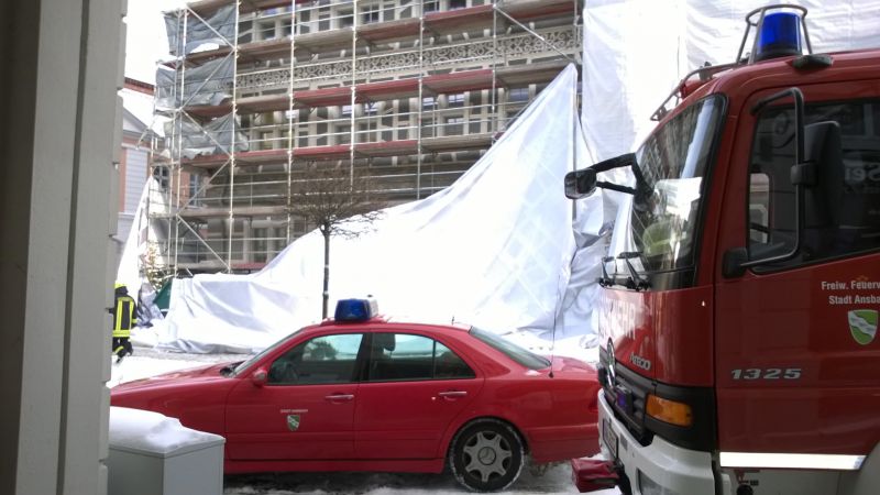 Am 28.12.2014 gegen 13:30 Uhr wurde die Feuerwehr Ansbach mit der Höhenrettungsgruppe zum Montgelasplatz zur Sicherung einer großen Plane alarmiert.