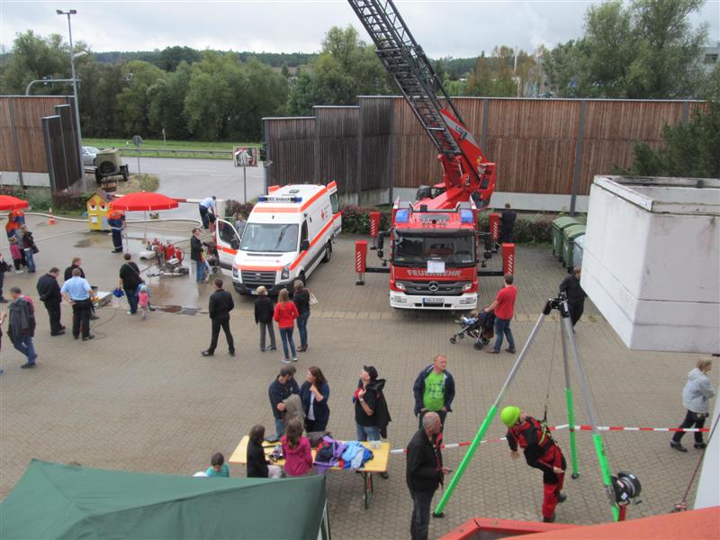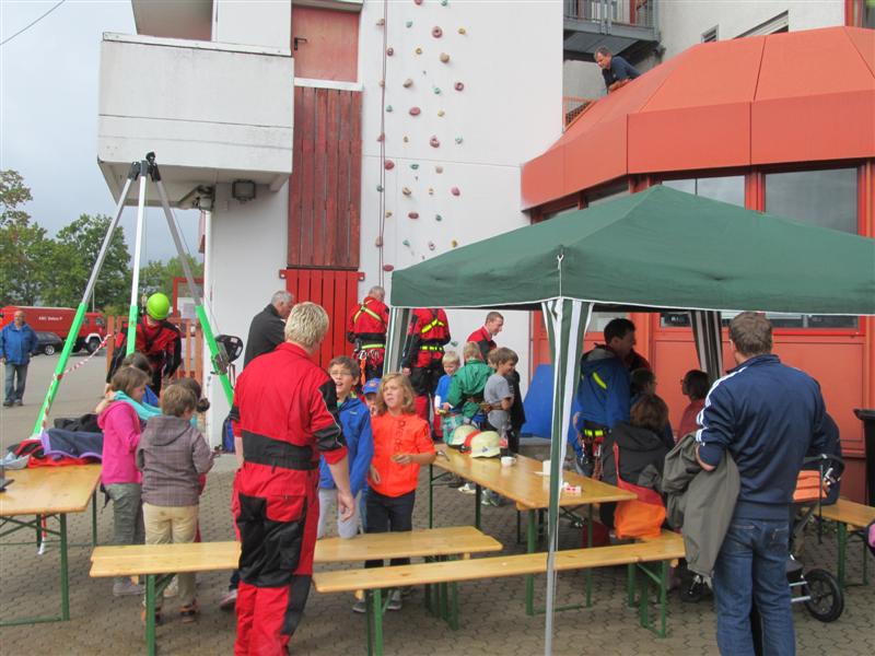 Für die kleineren Besucher war die Jugendgruppe mit dem Spritzenhäuschen vor Ort, danach konnten sich Unerschrockene bei der Höhenrettungsgruppe gut gesichert in die Vertikale wagen und am Schlauchturm die Kletterwand antesten.