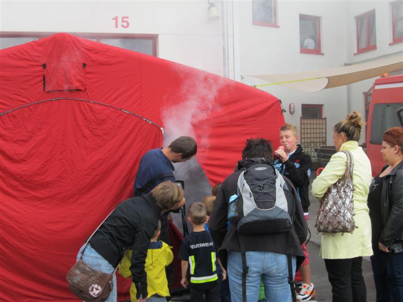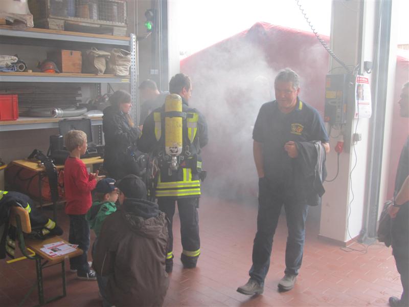 So konnte beispielsweise im Theaterrauch hautnah erlebt werden, wie sich ein Einsatz für Atemschutzträger anfühlt, weiterhin konnten sich Interessierte über die Chemikalienschutzausrüstung der Feuerwehr informieren.