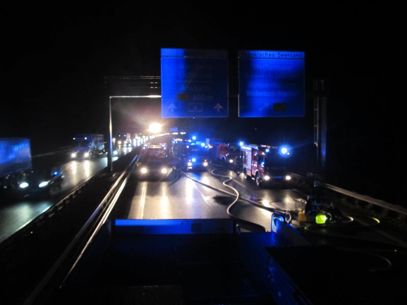 Am 12.01.2016 gegen 17:30 Uhr wurde die Feuerwehr Ansbach zu einem LKW-Brand auf der BAB 6 alarmiert.
