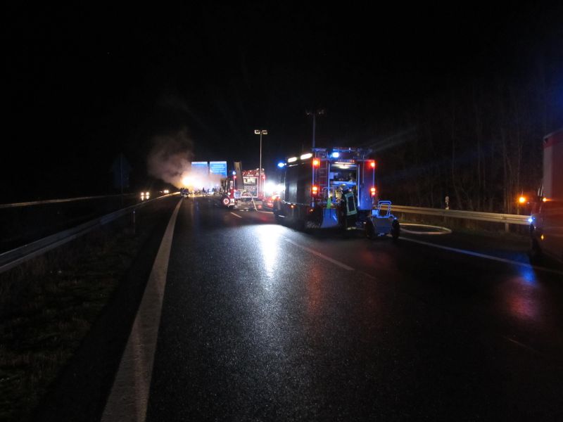 Zur Brandbekämpfung und zur Bergung des Fahrzeuges war die Autobahn mehrere Stunden gesperrt.