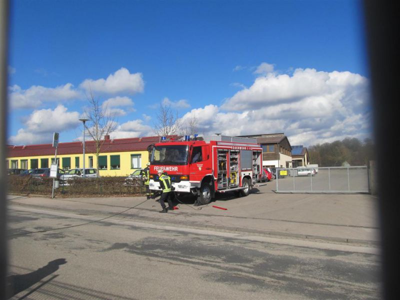 Der Rüstzug wurde kurz nach 12 Uhr in die Industriestraße alarmiert, um einen gekippten LKW gegen weiteres Abrutschen zu sichern.