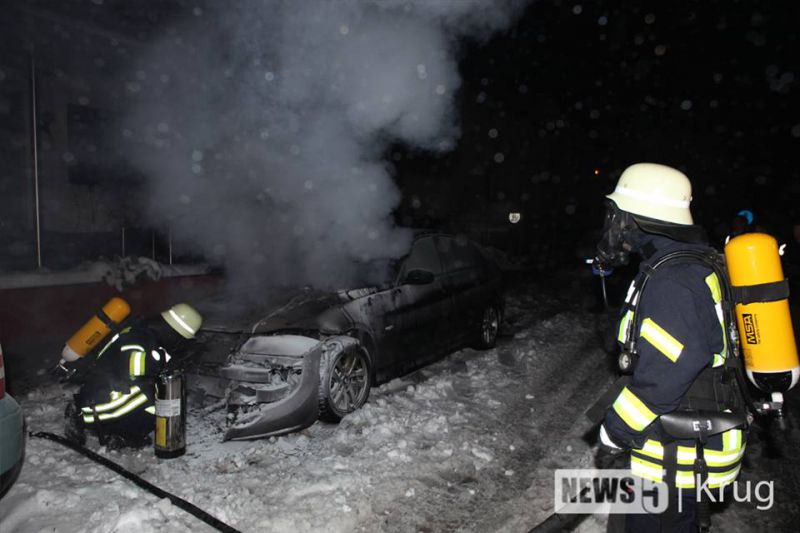 Bereits nach einer halben Stunde im neuen Jahr wurde die Feuerwehr zum ersten Einsatz im Jahr 2015 alarmiert. Es galt einen PKW in der Braterstraße, der im Motorraum in Brand geraten war, abzulöschen. Hier war ebenfalls ein Trupp unter schwerem Atemschutz mit einem Feuerlöscher und einem C-Strahlrohr im Einsatz. Seitens der Feuerwehr war hier das TLF 21/1 und das HLF 40/1 vor Ort.