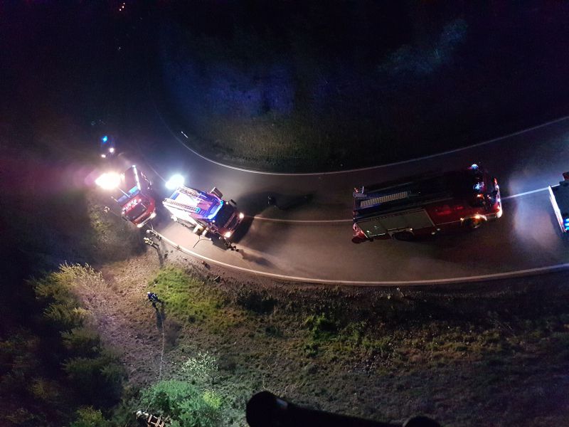 Im Anschluss wurde noch der verunfallte PKW mittels Seilwinde des Rüstwagens und Mehrzweckzug zurück auf die Fahrbahn gezogen.