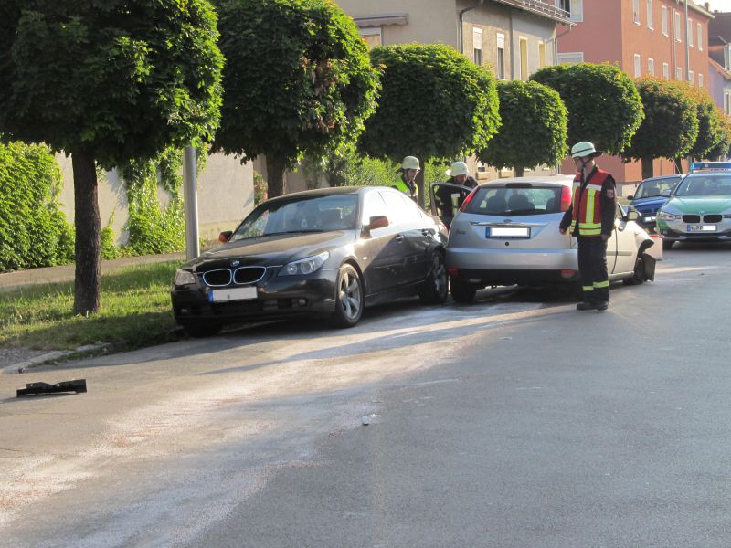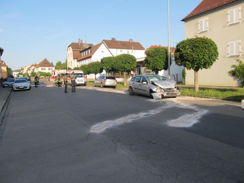 Ein anfangs gemeldeter Brand am PKW des Unfallfahrers war nicht gegeben, dabei handelte es sich vermutlich um eine Talkum-Staubwolke von der Airbagauslösung oder verdampfendes Kühlmittel.