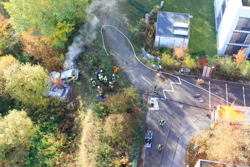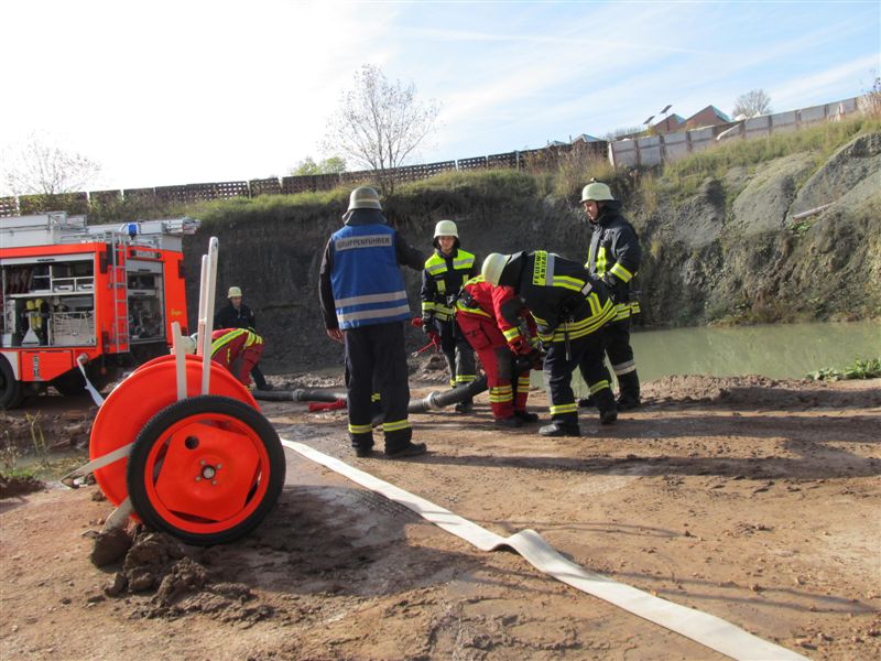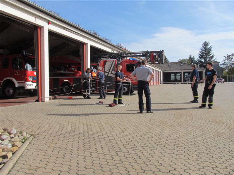 Zum Abschluss dieses Lehrgangs fand am 26.10. noch eine Ganztagesausbildung mit zwei größeren Übungen (technische Hilfeleistung mit Brandbekämpfung sowie Löscheinsatz mit Personenrettung) statt.