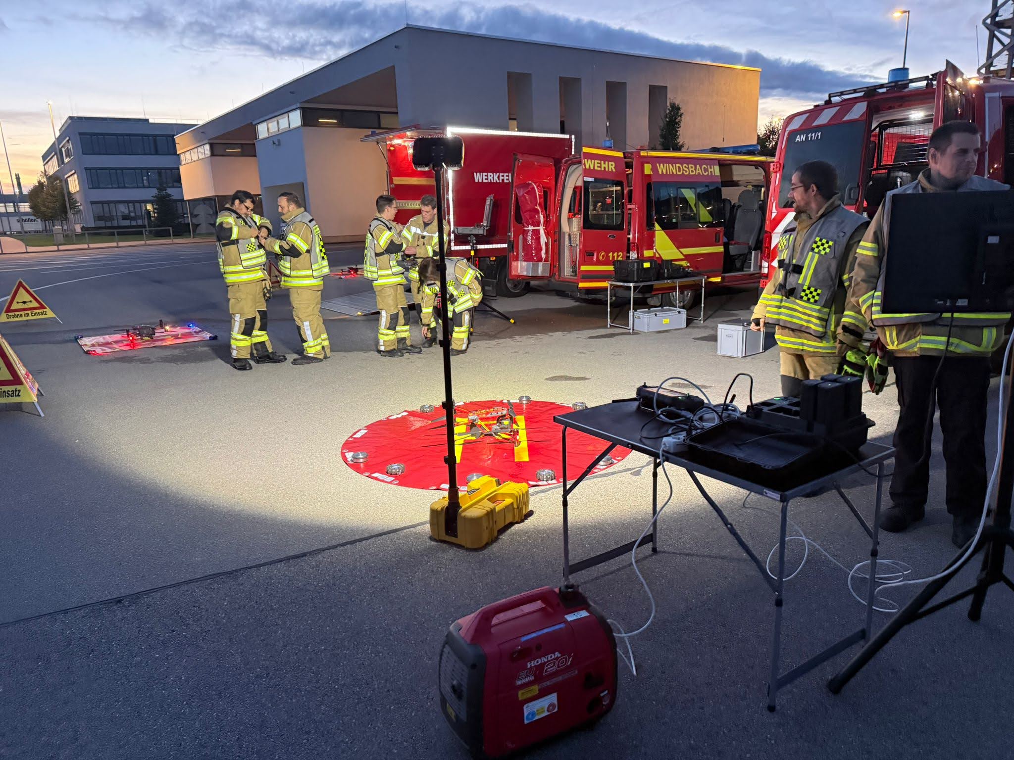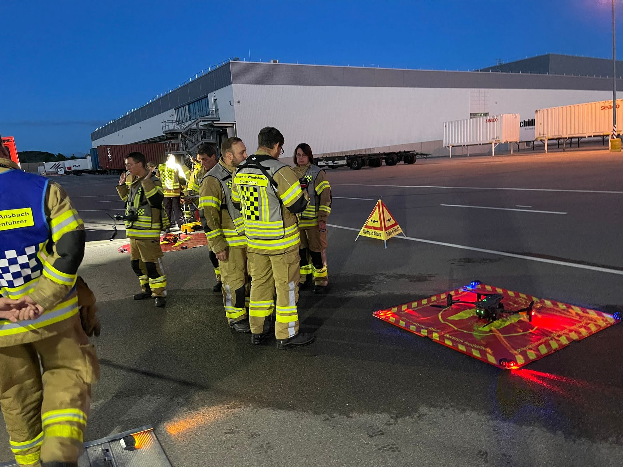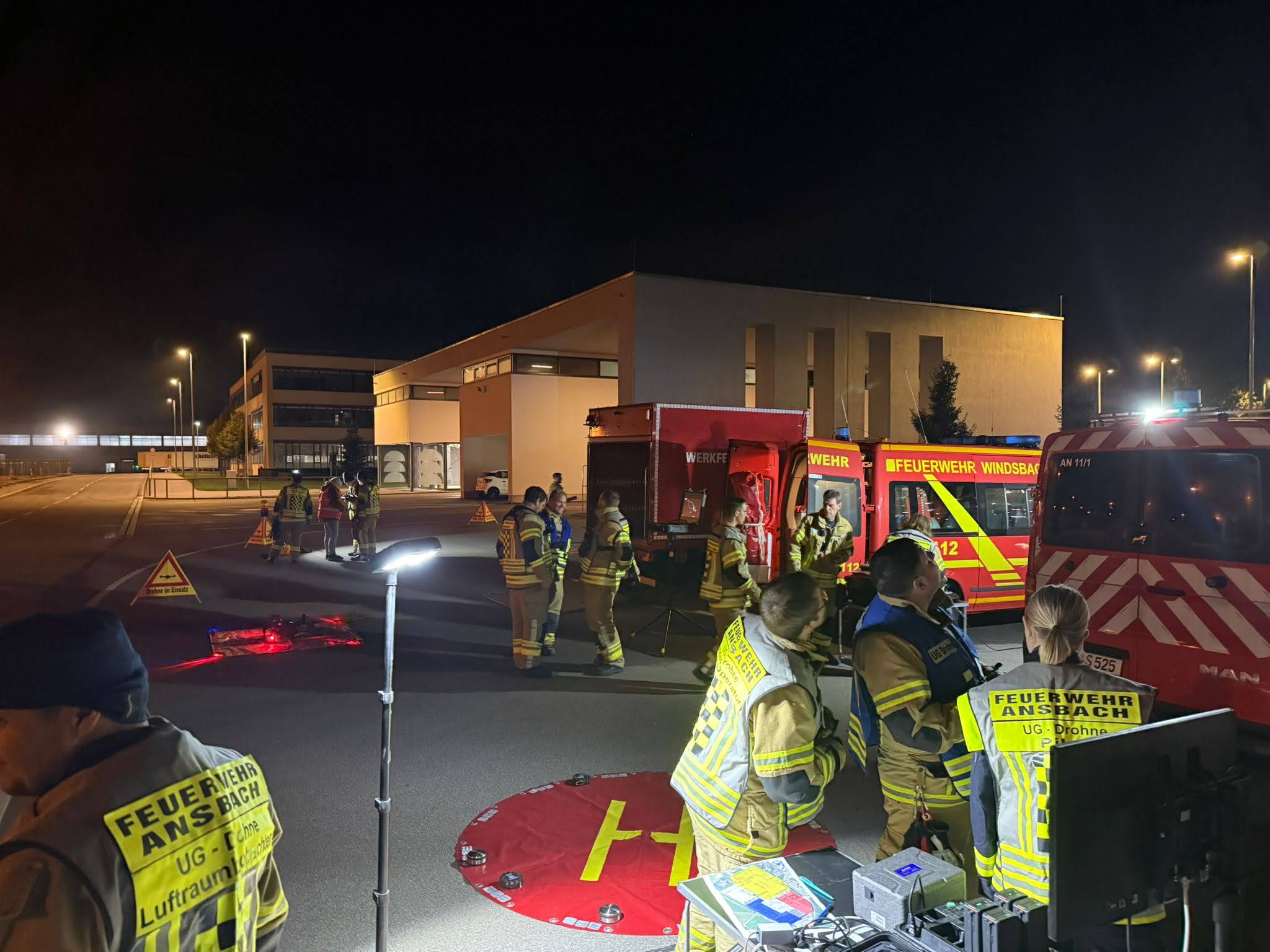 Am 25.09.2025 trafen sich die Unterstützungsgruppen Drohne der Freiwilligen Feuerwehr Ansbach, der Werkfeuerwehr BKH Ansbach sowie der Freiwilligen Feuerwehr Windsbach zu einer gemeinsamen Übung.