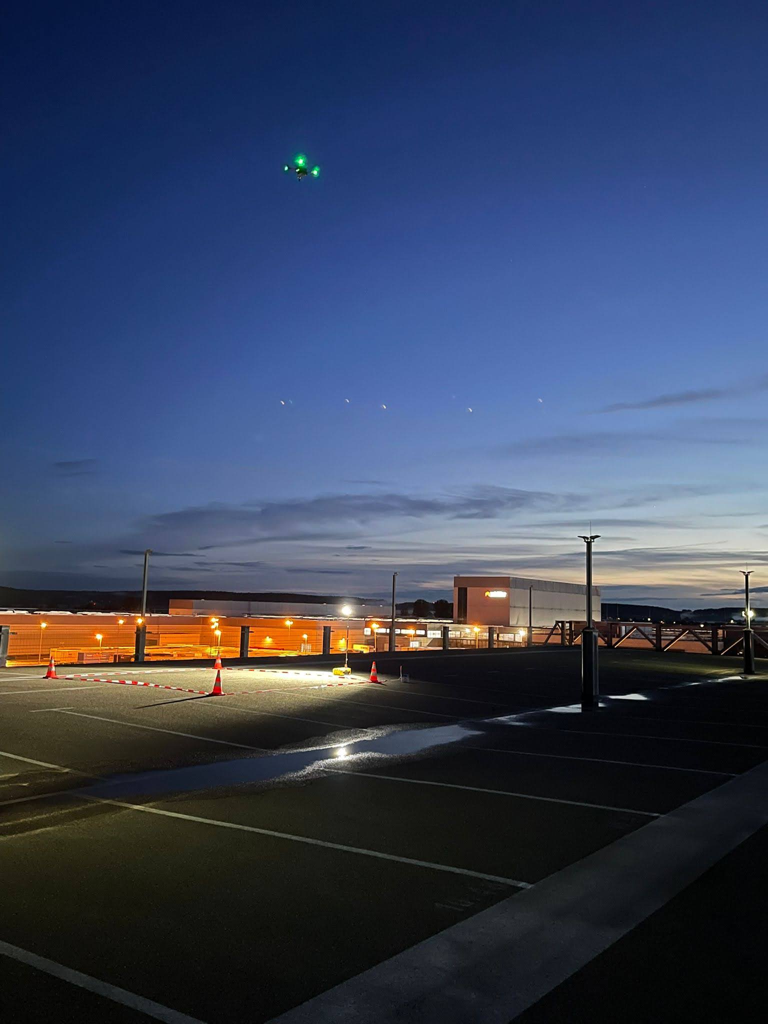 Es galt drei verschiedene Szenarien wechselnd abzuarbeiten. Hierunter waren u.a. Anflugübungen, Landungen außerhalb der Sicht, Absuchen von Zugängen an Gebäuden, GPS-Koordinaten setzen und weitergeben, Flug mit Suchscheinwerfer und mehr. Die Koordination der Drohnen (Flughöhe, Landesequenzen) und der Einsatzszenarien oblag hierbei der Feuerwehr Ansbach.