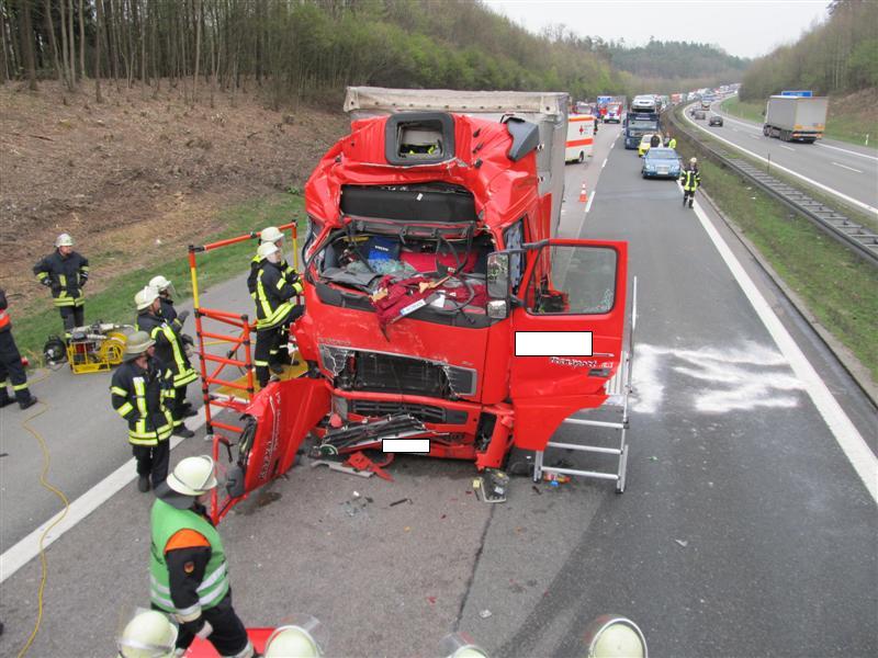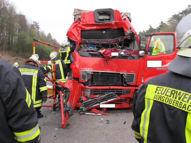 Die Feuerwehren aus Ansbach und Burgoberbach konnten den Fahrer nur noch tot aus dem völlig deformierten Führerhaus bergen. Anschließend suchten sie die Fahrerkabine nach möglichen weiteren Opfern ab, banden auslaufende Betriebsstoffe und stellten den Brandschutz sicher.