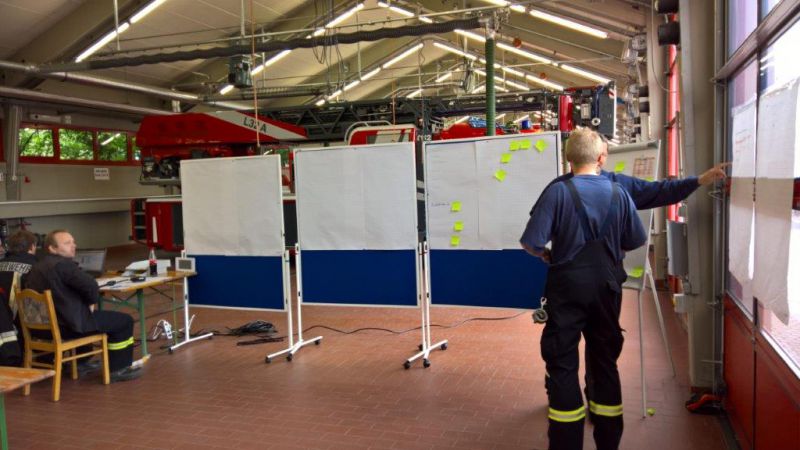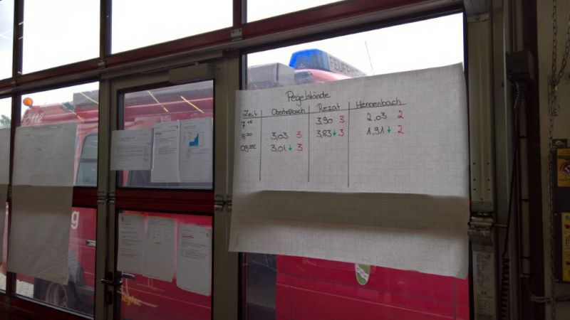 Die in der Integrierten Leitstelle entgegengenommenen Notrufe wurden in der Feuerwache durch die Unterstützungsgruppe Örtliche Einsatzleitung und hauptamtliches Personal gesichtet und nach Priorität an die Mannschaften verteilt.