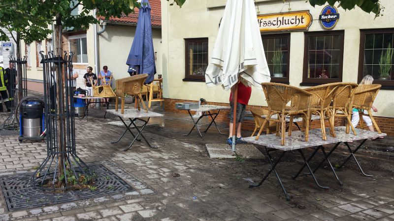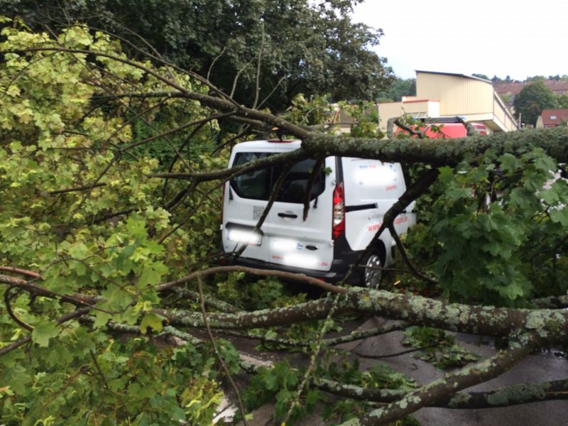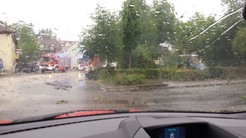 Bei sehr starken Wind ergossen sich in kürzester Zeit große Mengen Regen, so dass es zu lokalen Überschwemmungen der Straßen und Wege, vollgelaufenen Kellern und einem Überlaufen der Kanalisation kam. Zahlreiche Bäume und Äste brachen und mussten durch die Feuerwehr beseitigt werden. Stromverteiler liefen voll und es kam zu erheblichen Beeinträchtigungen des Straßenverkehrs.