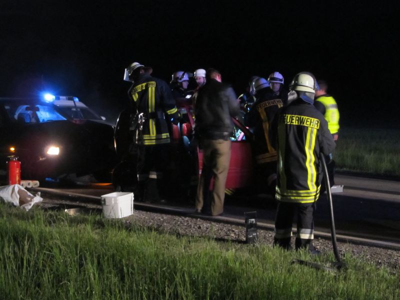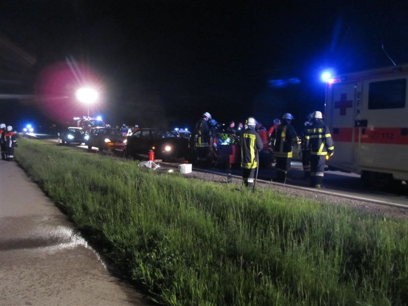 Die Feuerwehren Sachsen, Ansbach und Alberndorf rücken am 14.05.2014 gegen 22:30 Uhr zu einem Verkehrsunfall mit eingeklemmter Person aus.