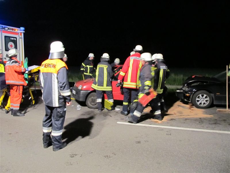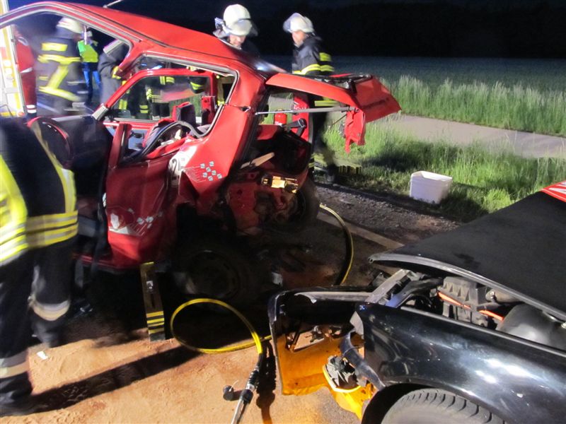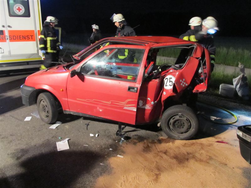 Auf der Staatsstraße zwischen Ansbach und Sachsen prallte ein Pkw auf einen Kleinwagen, dabei wurde die Fahrerin des Kleinfahrzeuges verletzt.