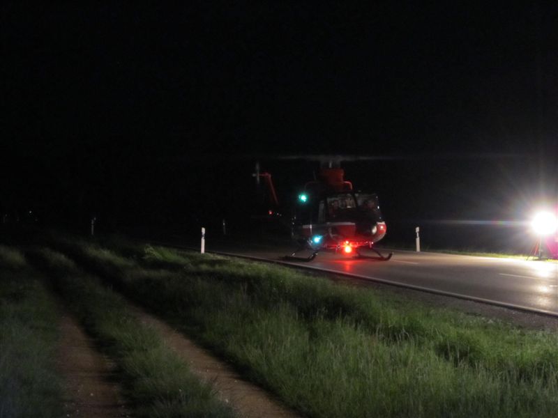 Weitere Aufgaben der Feuerwehren waren das Binden von auslaufendem Kraftstoff mit Sicherstellung des Brandschutzes, Ausleuchten und Absichern der Unfallstelle sowie das Ausleuchten des Hubschrauberlandeplatzes.