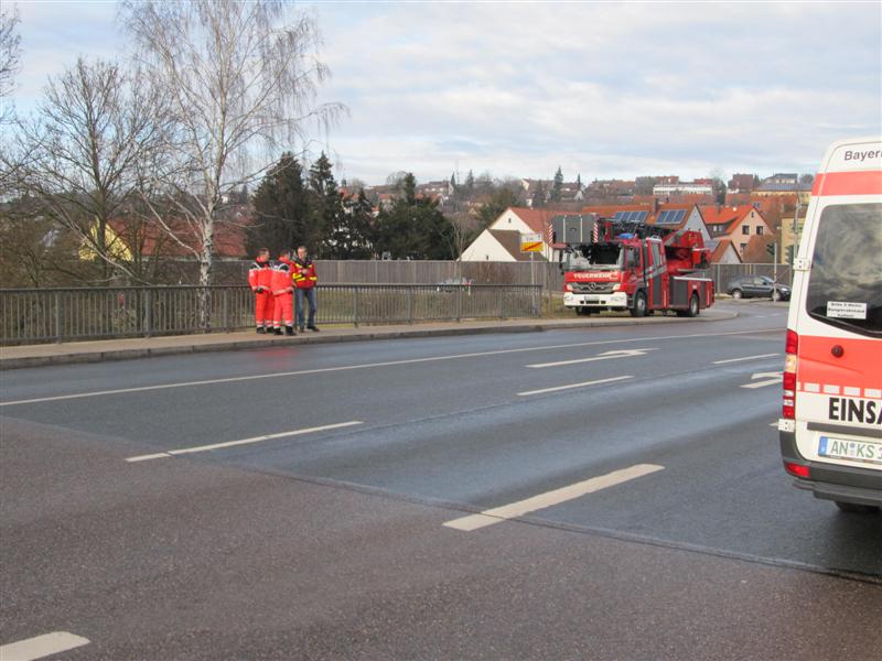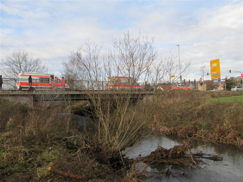 Daraufhin suchten Polizei, Feuerwehr und Rotes Kreuz mit Rettungshunden und Wasserwacht den Flussbereich auf Höhe des Möbelhauses Pilipp bis nach Steinbach ab.