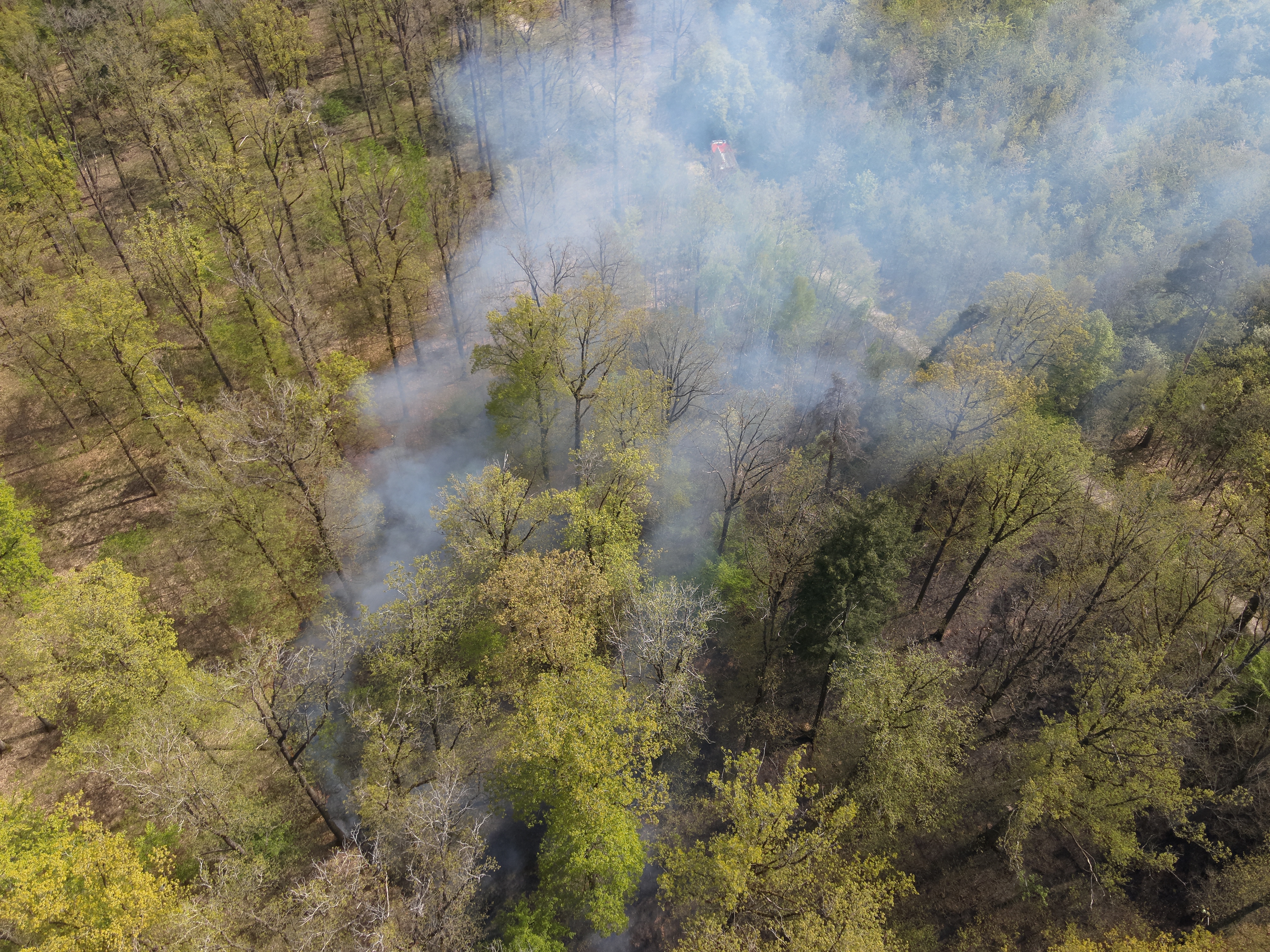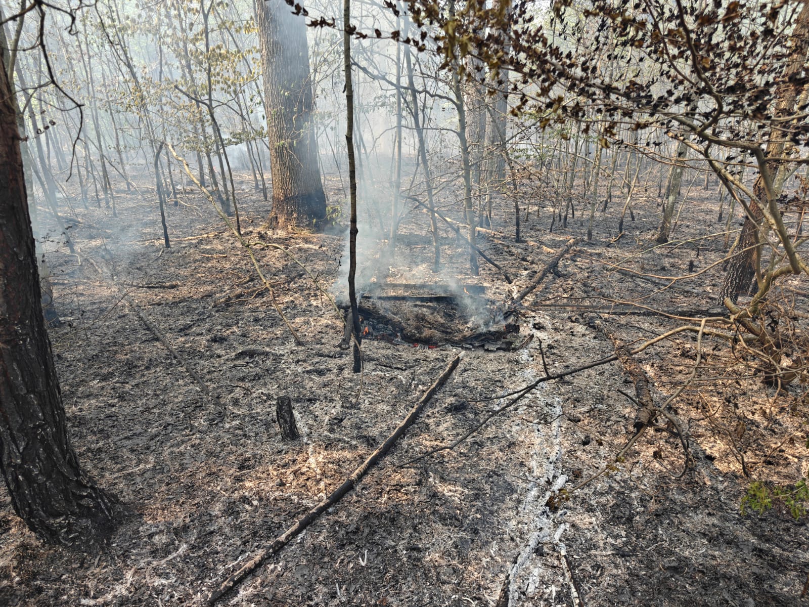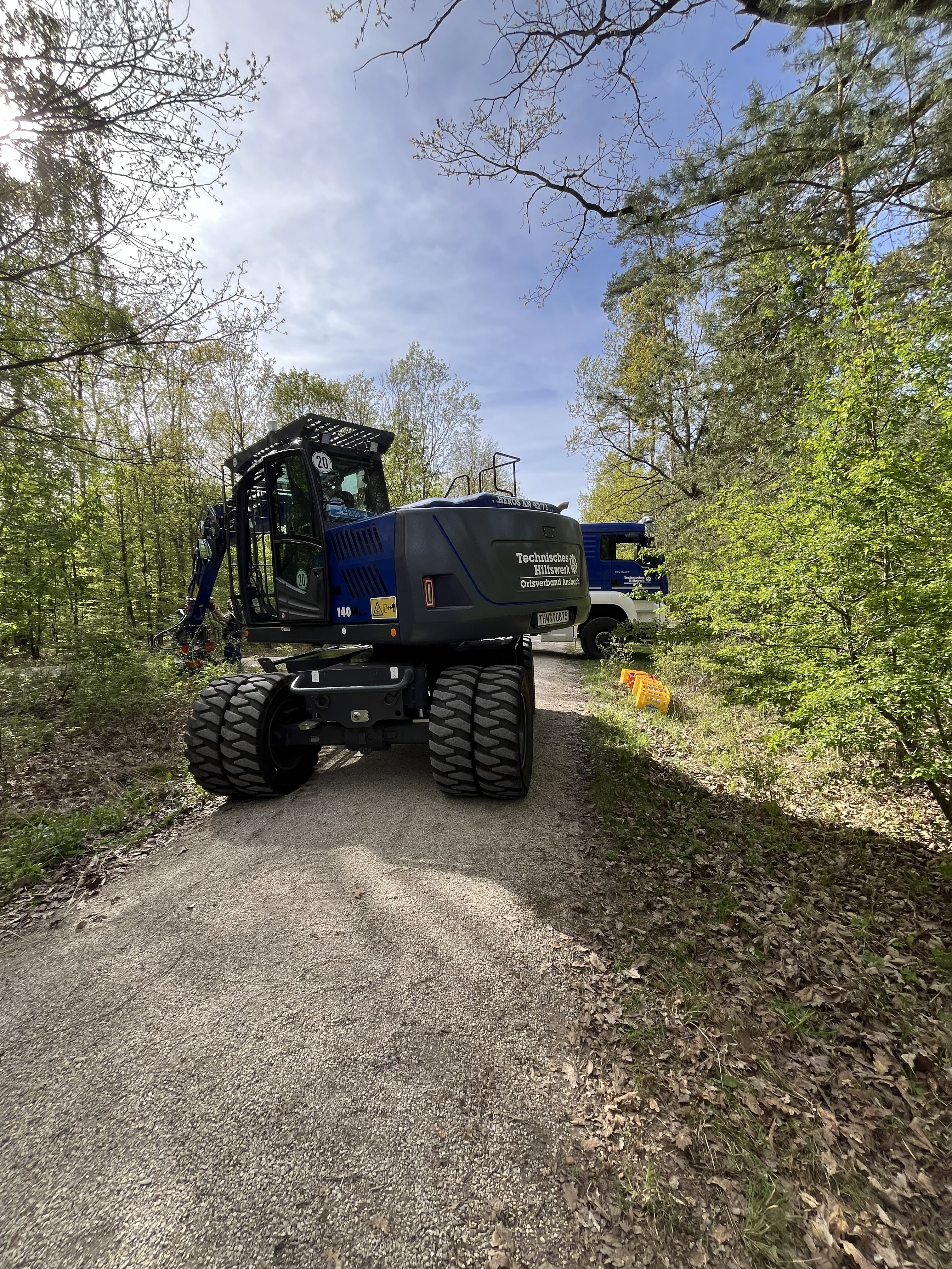Zur Eindämmung des Brandes wurden durch das THW, sowie ein privates Lohnunternehmen mit Baggern, Schneisen in den Wald gezogen.