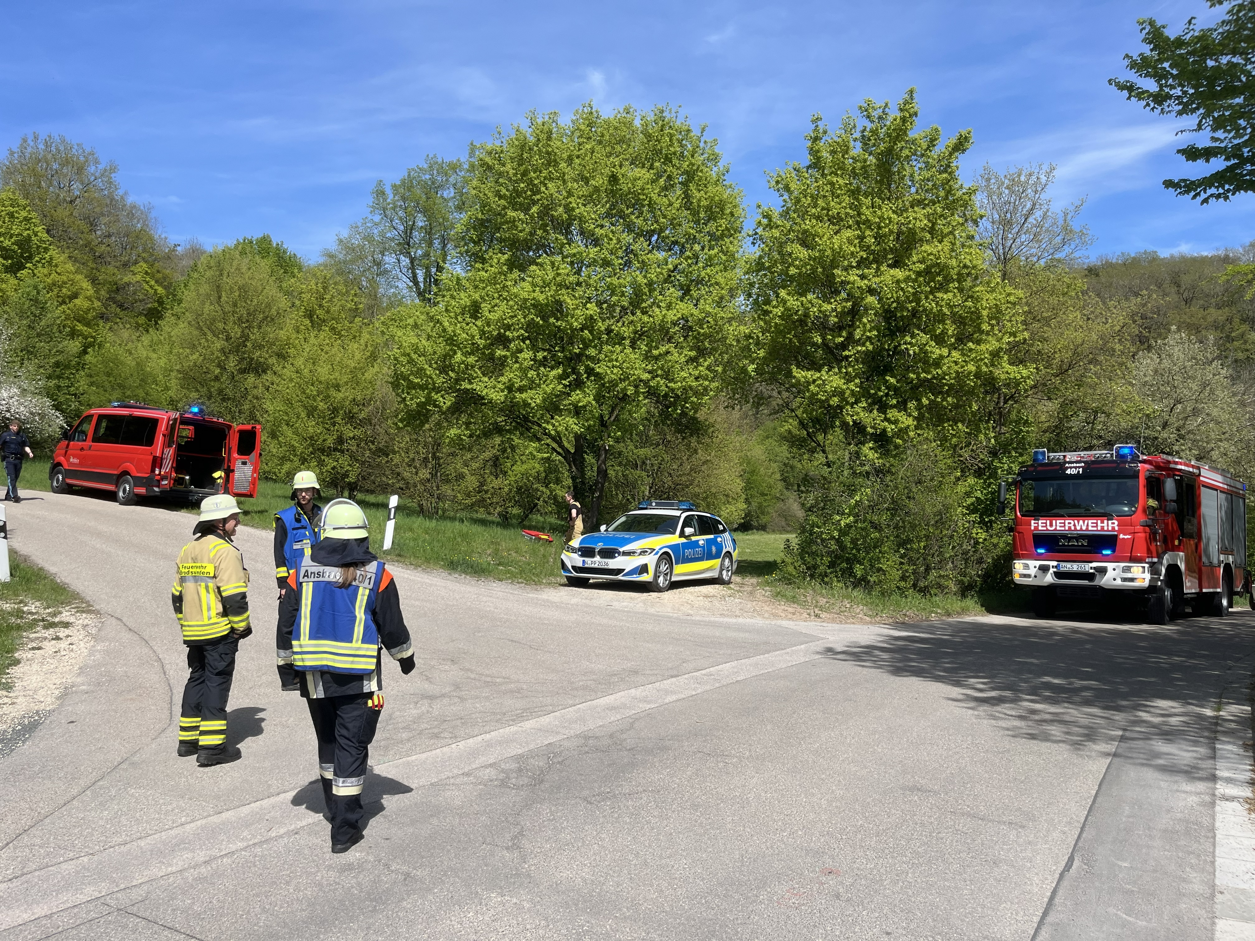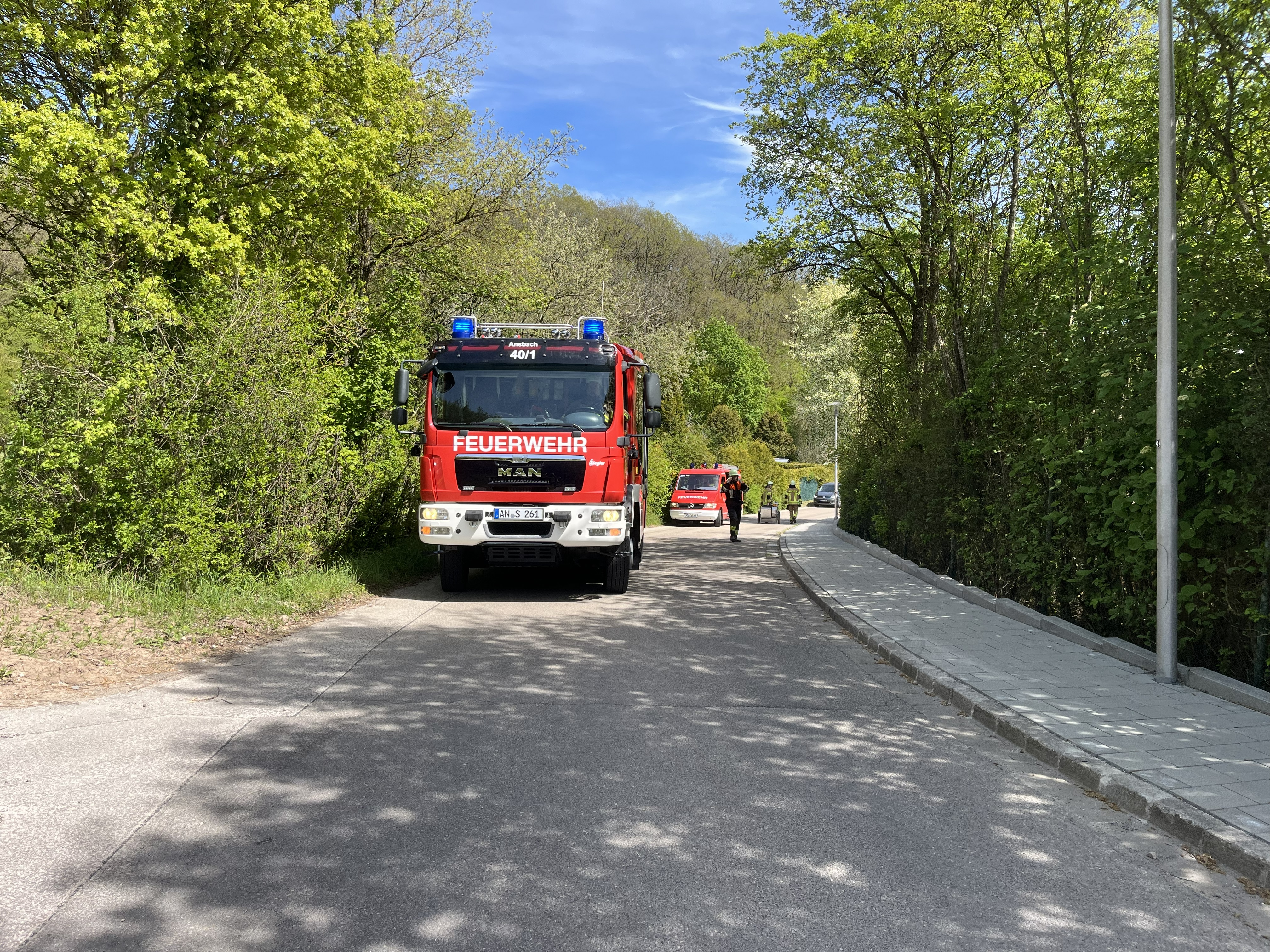 Am Einsatz beteiligt waren die Feuerwehren Ansbach, Schalkhausen und Hennenbach sowie die Wasserförderungskomponente der Stadt Ansbach mit den Feuerwehren Claffheim, Winterschneidbach und Brodswinden. Zusätzlich unterstützten der Rettungsdienst des BRK inklusive Bereitschaft und Einsatzleiter Rettungsdienst, das THW sowie weitere Beteiligte wie die Führungsgruppe Katastrophenschutz der Stadt Ansbach, der Oberbürgermeister und die zuständige Forstbehörde.