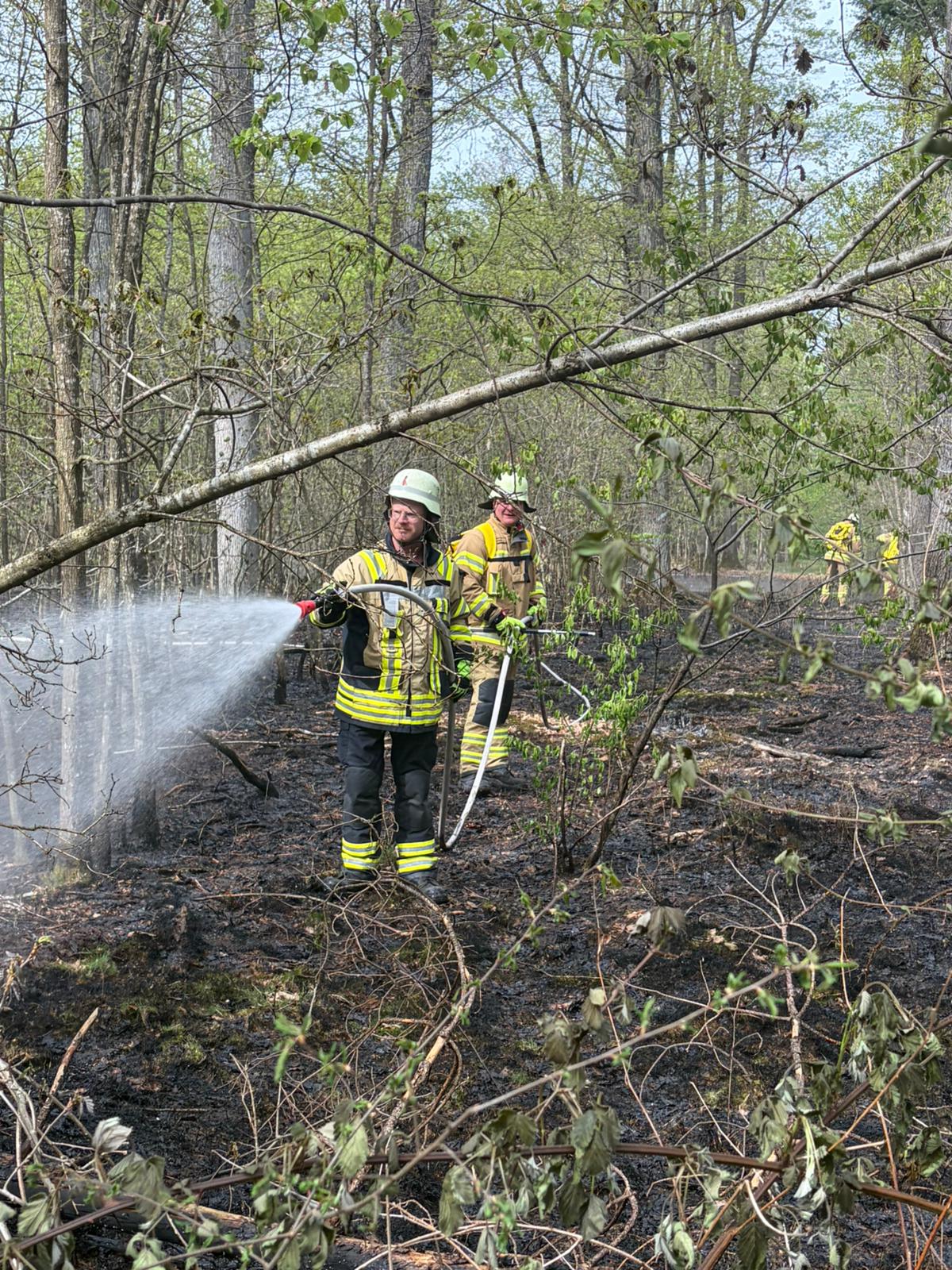 Zur Brandbekämpfung wurde eine rund 2.000 Meter lange B-Schlauchleitung zur Löschwasserversorgung aufgebaut. Die Wasserabgabe erfolgte über insgesamt 6 D-Strahlrohre, 4 C-Strahlrohre sowie 8 Löschrucksäcke im direkten Waldgebiet.