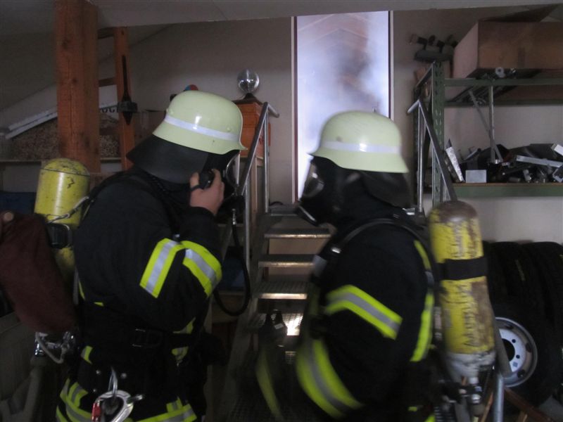 Den Abschluss bildete eine Einsatzübung, bei der aus einem Brandmeldereinlauf ein "Real"-Brand mit 10 vermissten Personen wurde, der insbesondere die Atemschutzgeräteträger an Ihre Grenzen brachte.