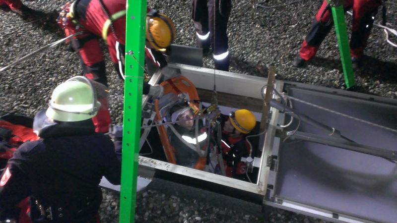 Angenommen war, dass eine Person durch eine offene Rauchabzugsklappe in ein verschlossenes Industriegebäude gestürzt war. Ein zeitnaher Zugang durch Aufbrechen von Türen war in diesem Szenario nicht vorgesehen.