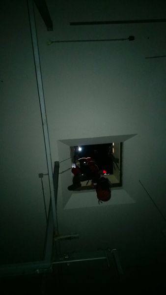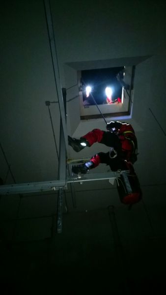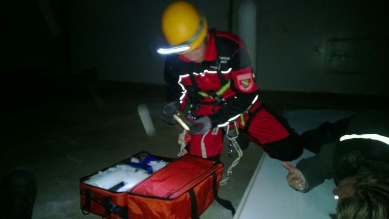 Um eine schnelle Betreuung sicherzustellen, seilten sich daher 2 Feuerwehrleute durch die Dachluke in das Gebäude ab, versorgten eine stark blutende Wunde und schienten eine Fraktur des Armes.