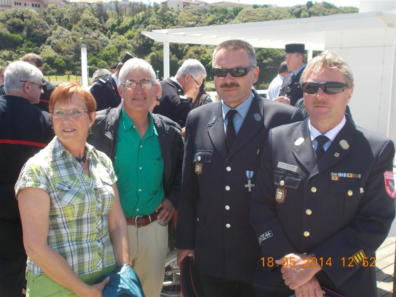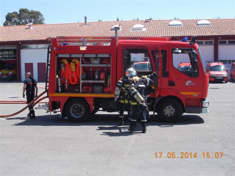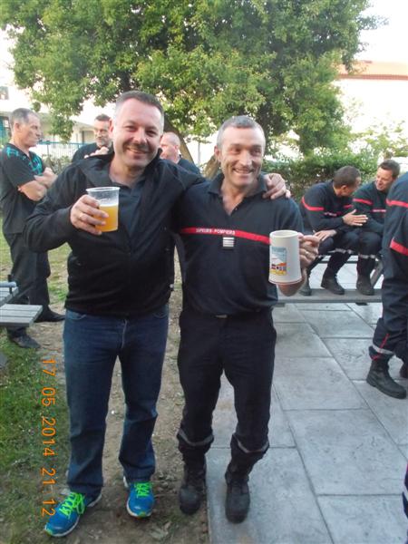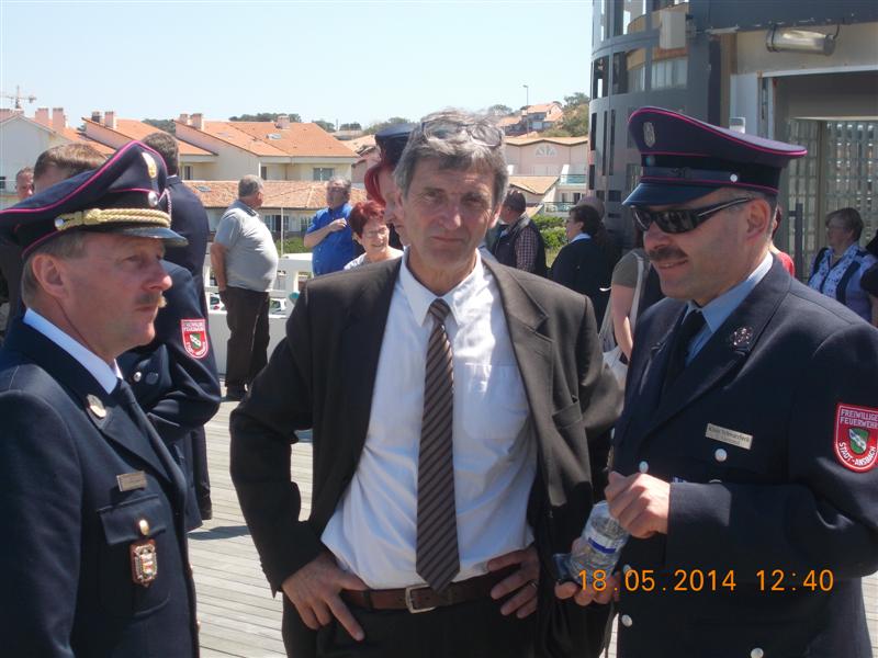 Nach 14-stündiger Fahrt wurden die sechs Feuerwehrmänner und die Feuerwehrfrau am 16. Mai durch den Bürgermeister von Anglet Claude Olive sowie den Kommandanten Joseph Bonson und seinen Offizieren mit einem kleinen Imbiss Willkommen geheißen. Nach dem Austausch von Gastgeschenken ging es weiter nach Bayonne zur Besichtigung einer Stierkampfarena.