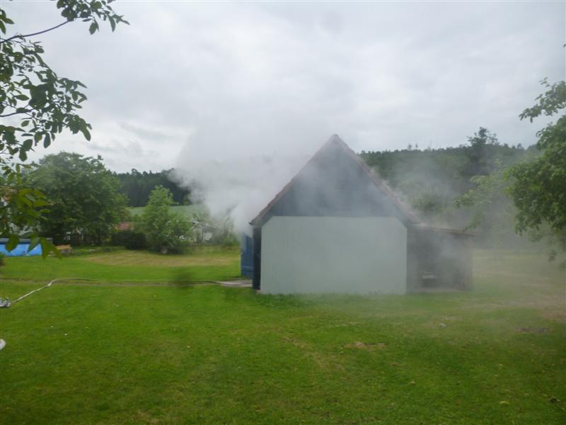 Zeitgleich wurde eine Gasflasche aus der Hütte geschafft und gekühlt, parallel bekämpfte ein zweiter Trupp das Feuer.