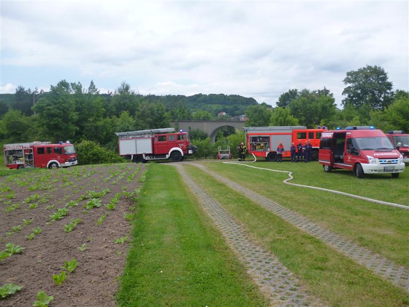 Die Feuerwehren Brodswinden und Elpersdorf kümmerten sich um die Wasserversorgung und die Brandbekämpfung. Unsere Jugendgruppe aus Ansbach war für die Technische Hilfeleistung und die Personensuche zuständig. Die Hauptaufgabe hierbei bestand darin, eine verletzte Person durch den Einsatz von Hebekissen unter einem Hänger zu befreien.