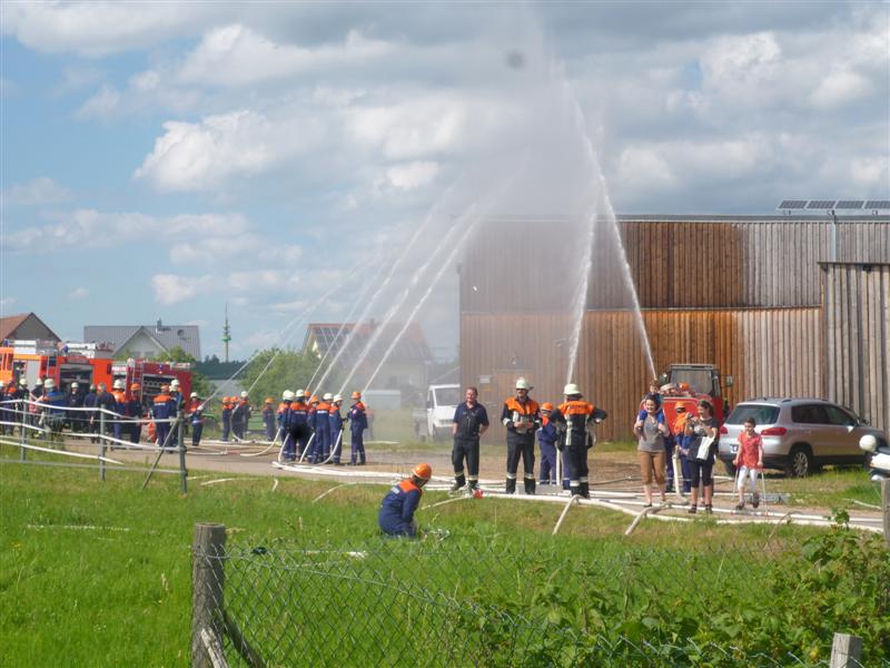 Um 16:00 Uhr rückten alle Jugendfeuerwehren auf das Alarmstichwort „Brand Landwirtschaftliches Anwesen“ zu einem Großeinsatz aus. Am Einsatzort bauten die Stadtteilwehren die Wasserversorgung auf und bekämpften das Feuer. Parallel kümmerte sich die Gruppe aus Ansbach um die Verkehrsabsicherung und die Rettung mehrerer Personen aus einem verunglückten PKW.