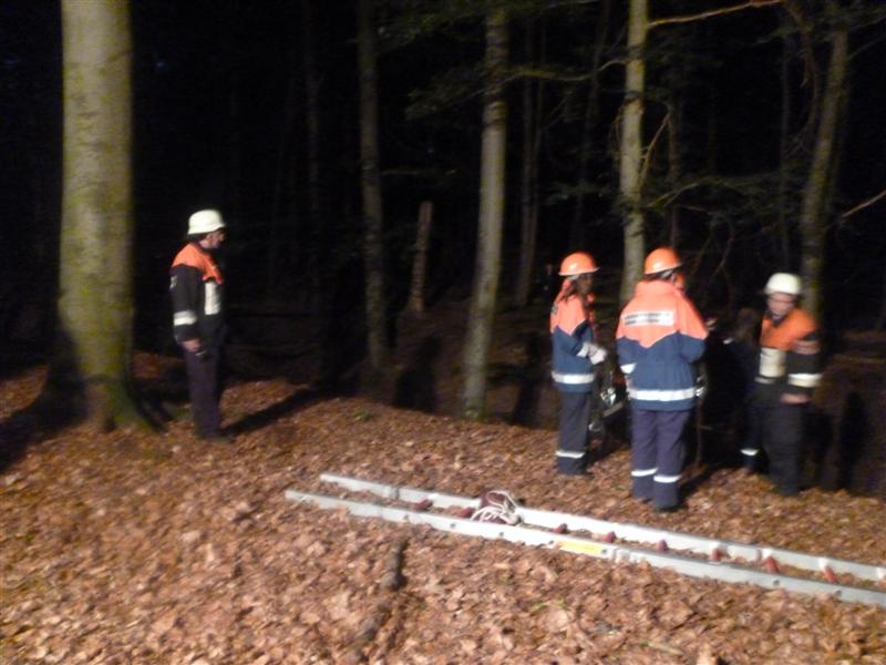 Um 21:30 Uhr folgte der vierte Einsatz. In einem Waldstück waren mehrere Personen vermisst. Alarmiert waren die Feuerwehren, Bernhardswinden, Brodswinden, Hennenbach und die Jugendgruppe des THW. Letztere leuchtete einen Hubschrauberlandeplatz aus, richtete eine Verletztensammelstelle ein und baute eine Brücke über einen Graben.