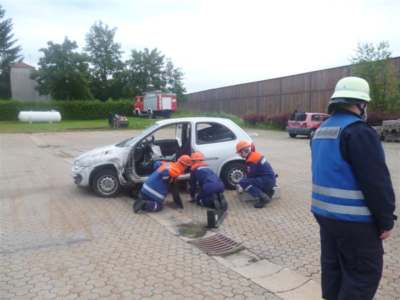 Um 06:45 Uhr wurden sie aus dem Schlaf gerissen, da der Hausgong ertönte. Noch halb verschlafen ging es mit dem Stichwort „Brand PKW – Person eingeklemmt“ zu den Fahrzeugen. Am Einsatzort musste sich die Jugend der letzten Herausforderung des Tages stellen, aus dem Motorraum eines Pkw drang starker Rauch und eine Person lag unter dem Fahrzeug. Während ein Trupp sich um die Brandbekämpfung kümmerte, sicherte ein zweiter das Fahrzeug und bereitete die Hebekissen vor. Nachdem das Feuer gelöscht war, wurde das Auto angehoben und die verletzte Person mit vereinten Kräften befreit.