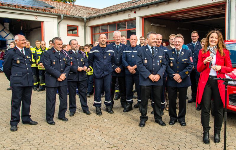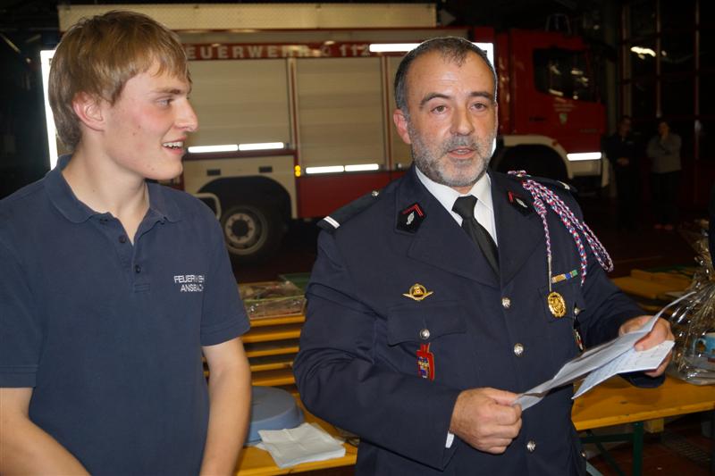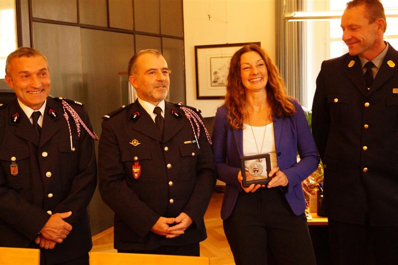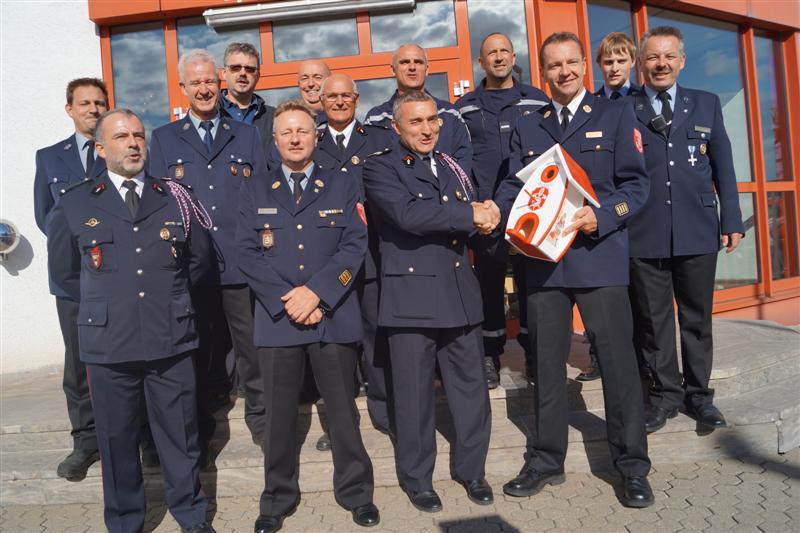 Im Rahmen der Fahrzeugübergabe unseres neuen Einsatzleitfahrzeuges wurde ihnen durch die Oberbürgermeisterin ein Feuerwehrehrenzeichen verliehen. Der Sonntagabend endet im Kreise der Feuerwehr, hierbei wurden Erinnerungsgeschenke übergeben.