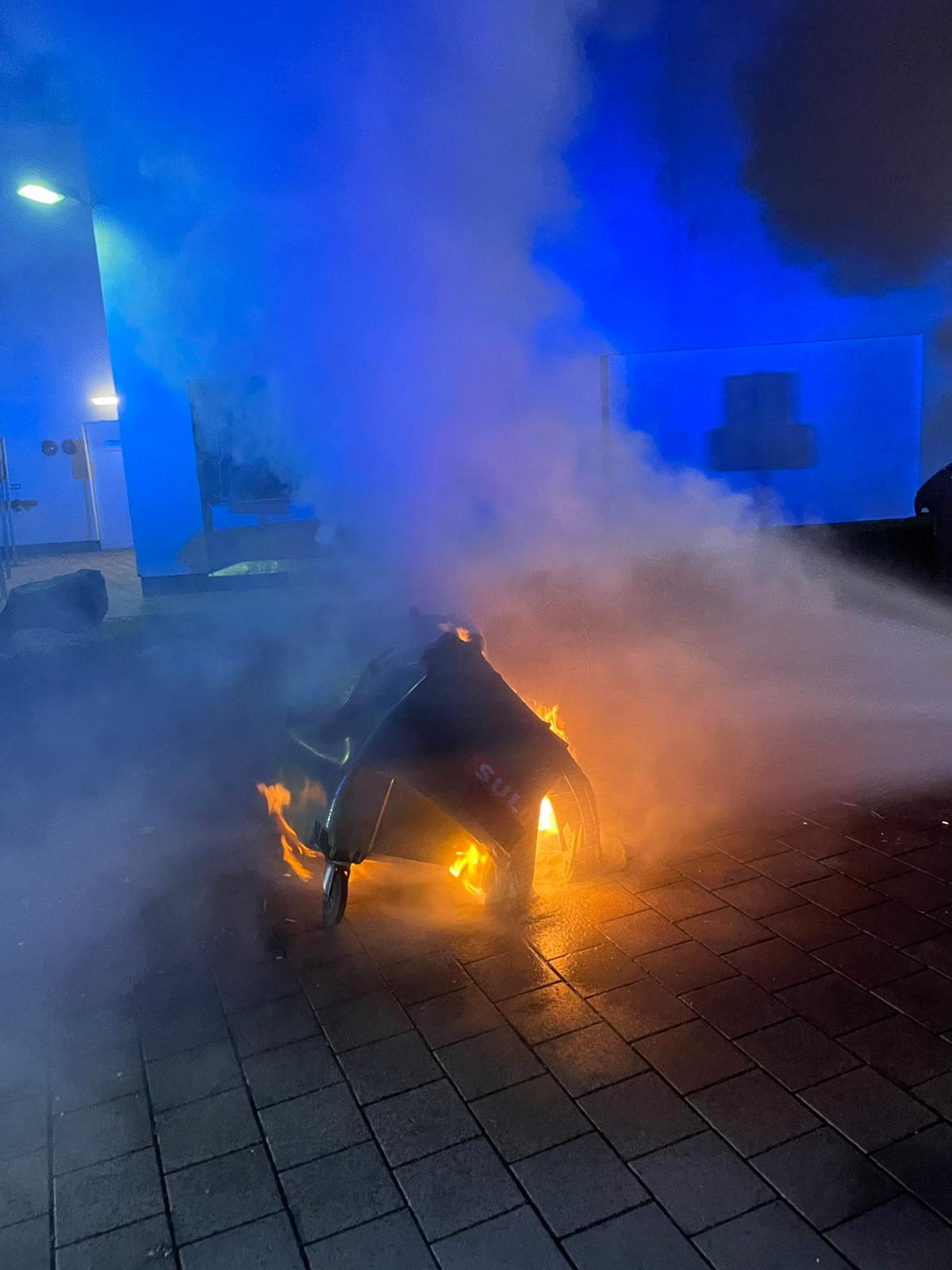 Am Freitagabend wurde die Feuerwehr Ansbach gegen 21:00 Uhr zu einem brennenden Müllcontainer in der Brauhausstraße alarmiert.