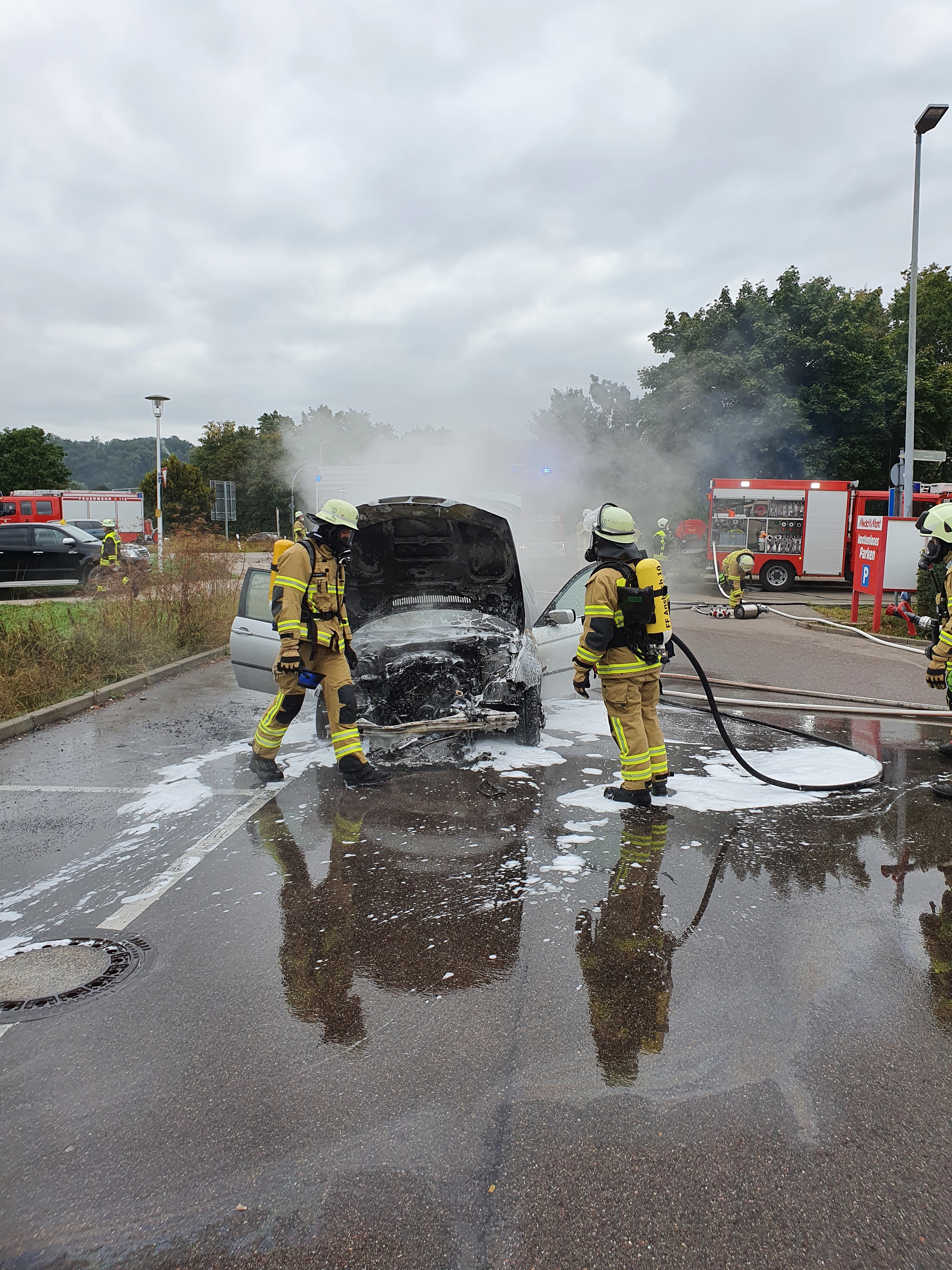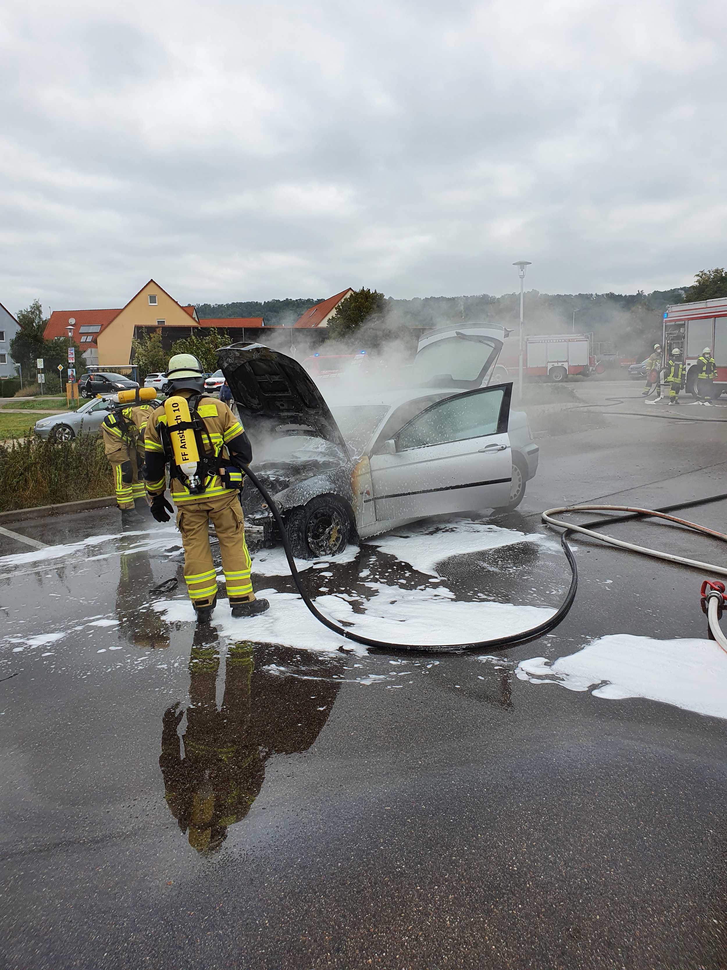 Am 22.09.2021 gegen 08:30 Uhr wurde die Feuerwehr Ansbach zu einem Brand eines Pkw in Neuses alarmiert.