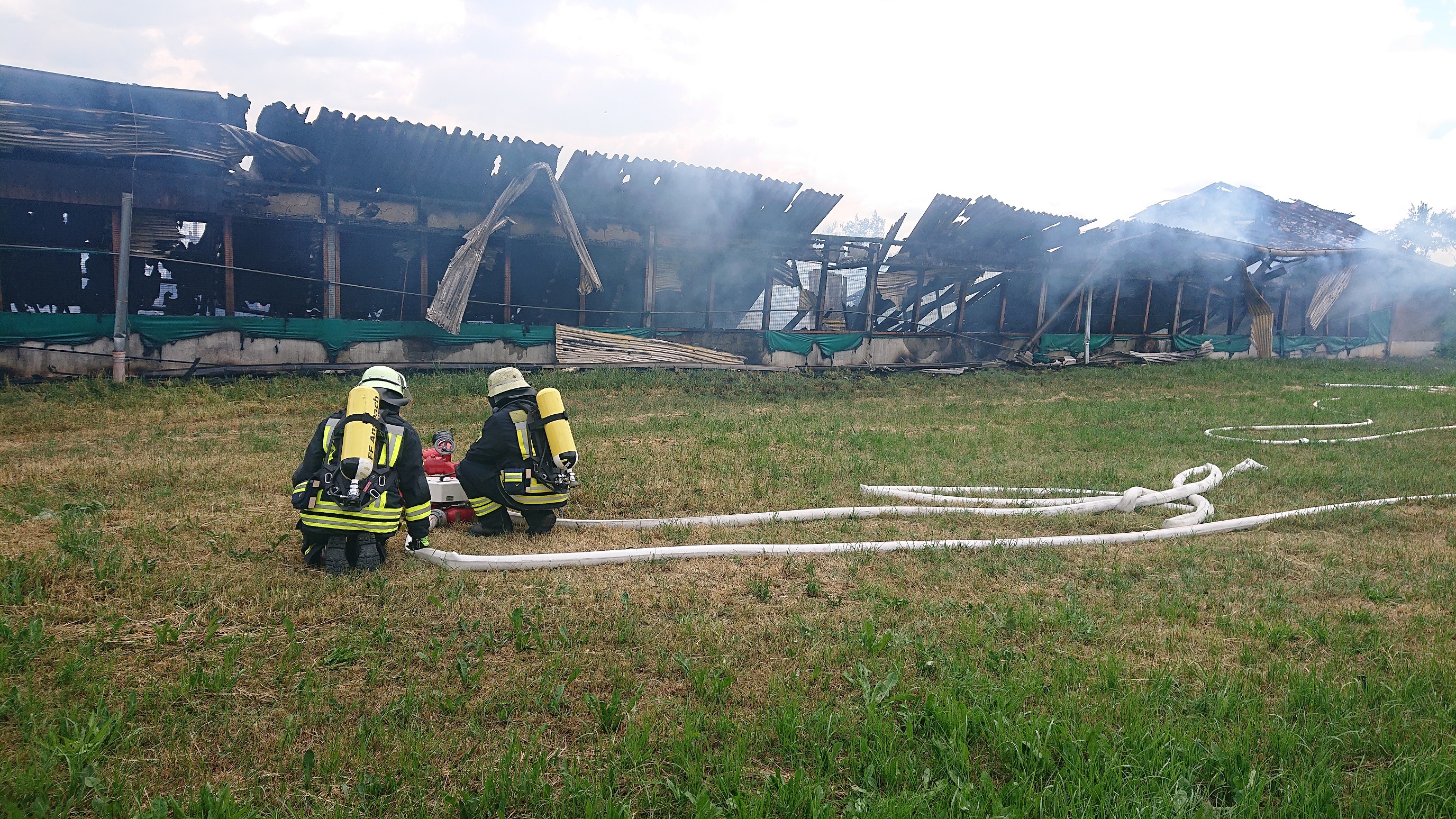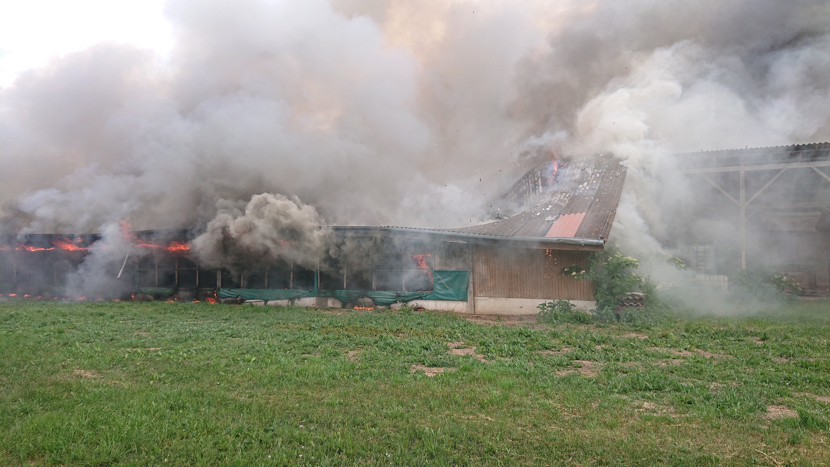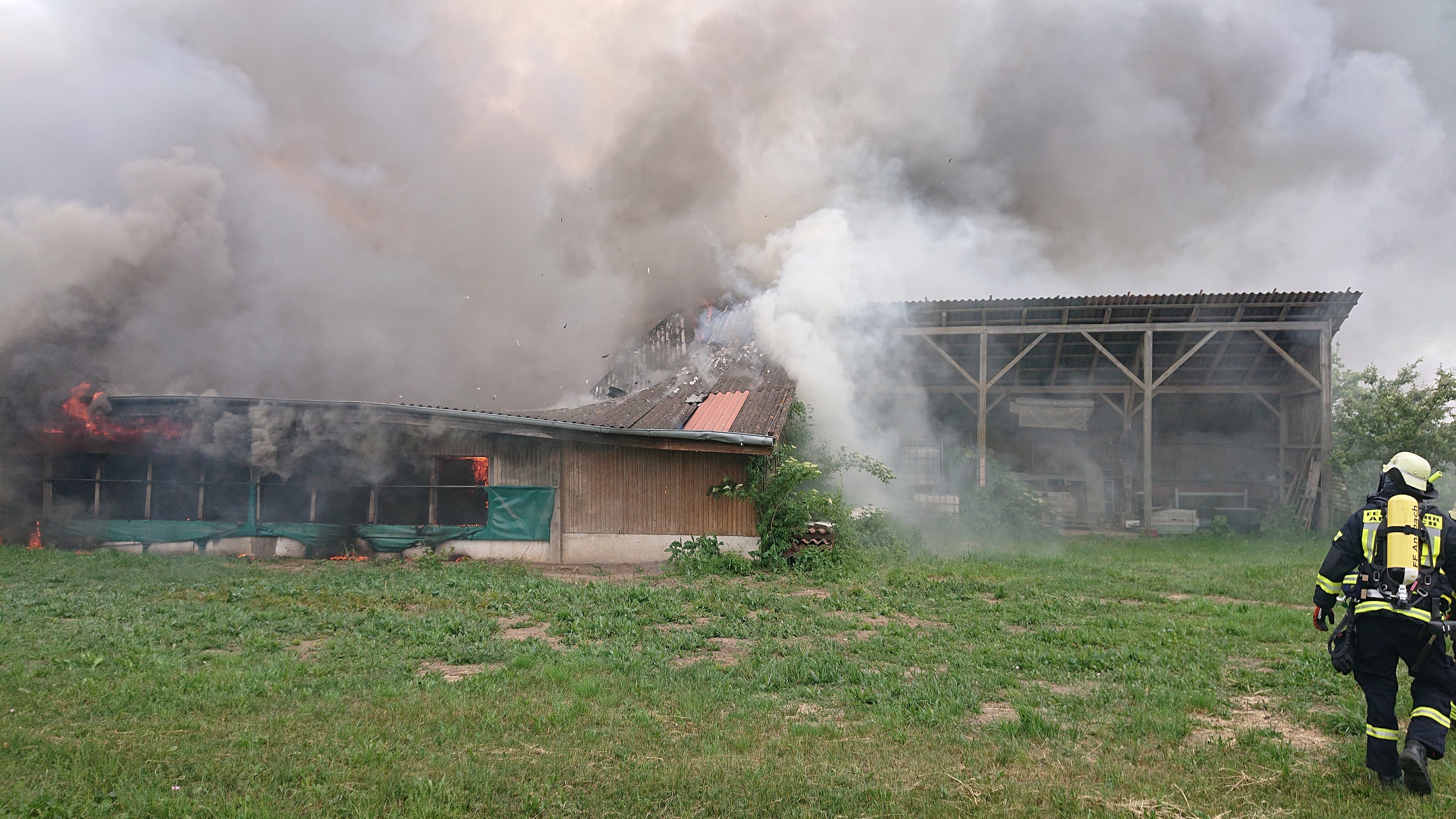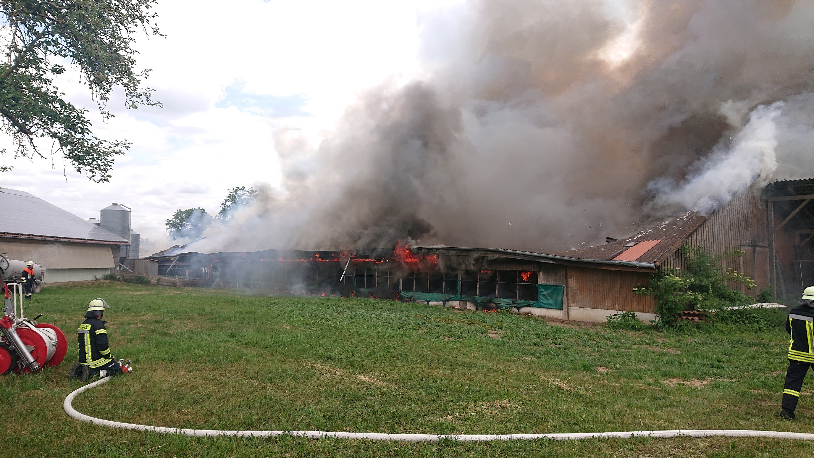 Bei Eintreffen der ersten Kräfte standen eine landwirtschaftliche Halle, welche als Strohlager diente und ein Putenstall in Vollbrand. Umgehend wurde ein massiver Löschangriff aufgebaut. Im Mittelpunkt der Arbeiten stand es, mehrere weitere Gebäude zu schützen. Ein komplettes Ausbrennen der betroffenen Gebäude konnte nicht verhindert werden.
