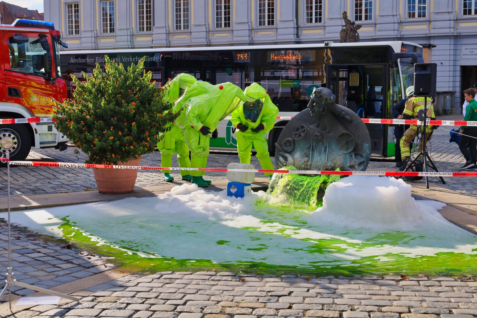 Damit nicht genug, ereignete sich am Mittwoch dem 21.09.2022, am Brunnen des Schloßplatzes ein Unfall mit einer austretenden giftigen Flüssigkeit.