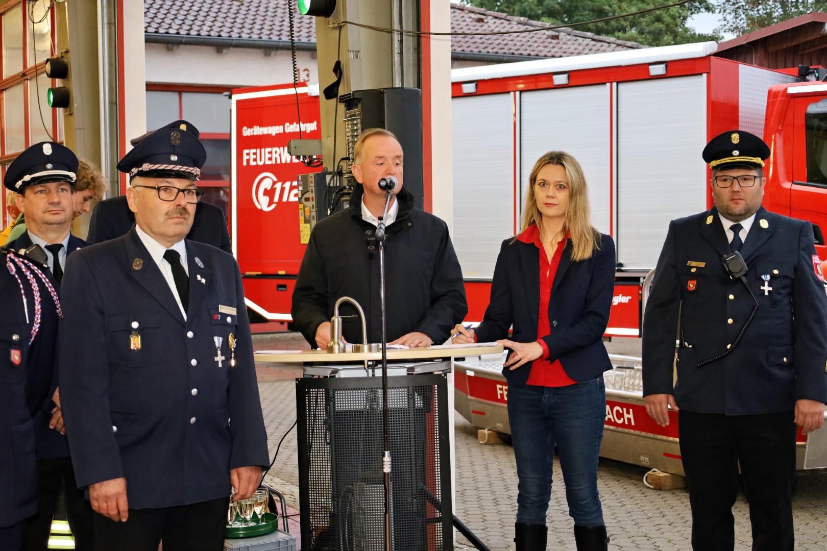 Ebenfalls wurden unsere Feuerwehrfreunde aus der Partnerstadt Anglet, welche bereits seit Donnerstag unter unseren Reihen verweilten, offiziell begrüßt.