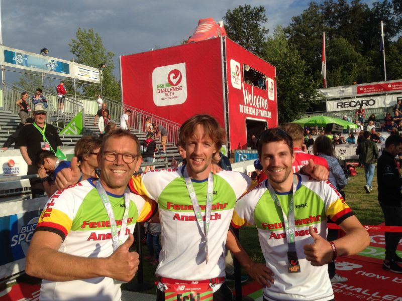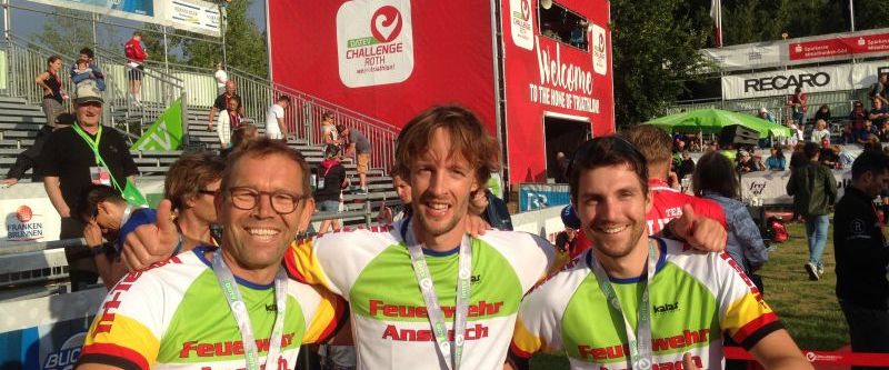 Auch dieses Jahr nahmen wieder sechs Ansbacher Feuerwehrler, aufgeteilt in zwei Staffeln, beim Triathlon in Roth teil.