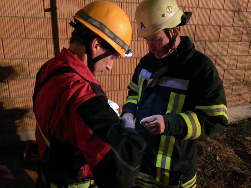 Zum Abschluss des Übungsabends wurde das Wissen bei der Rettung einer bewusstlosen Person in der Steigschutzanlage angewendet.
