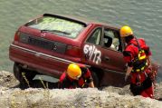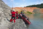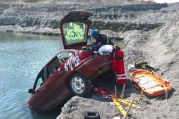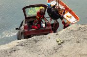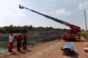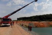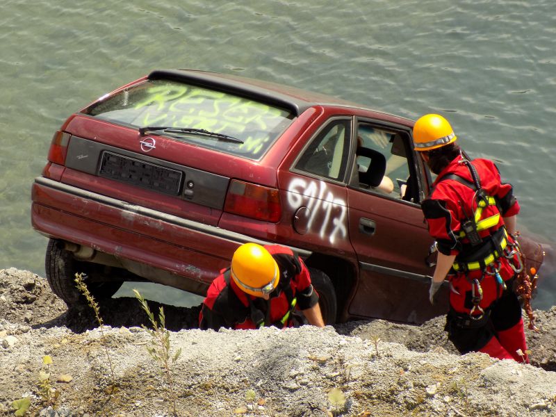 Im Werk der Firma Wienerberger ("Tonwerk") war ein PKW in den dortigen Baggersee gefahren und steckte mit der Front voran im Wasser.