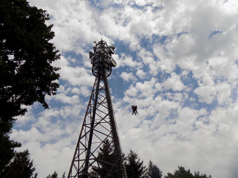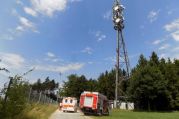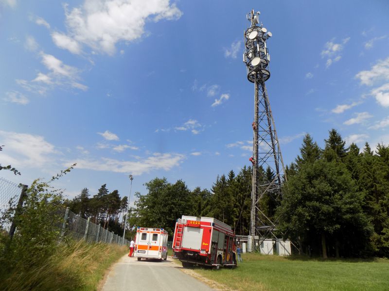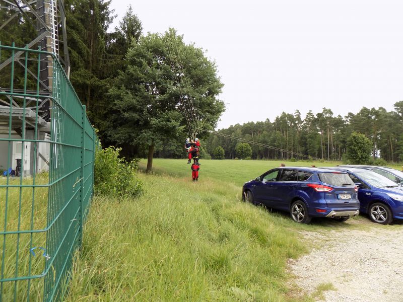 An einem Mobilfunkmast in Obereichenbach befand sich ein verunglückter Arbeiter auf einer Plattform in 35m Höhe.